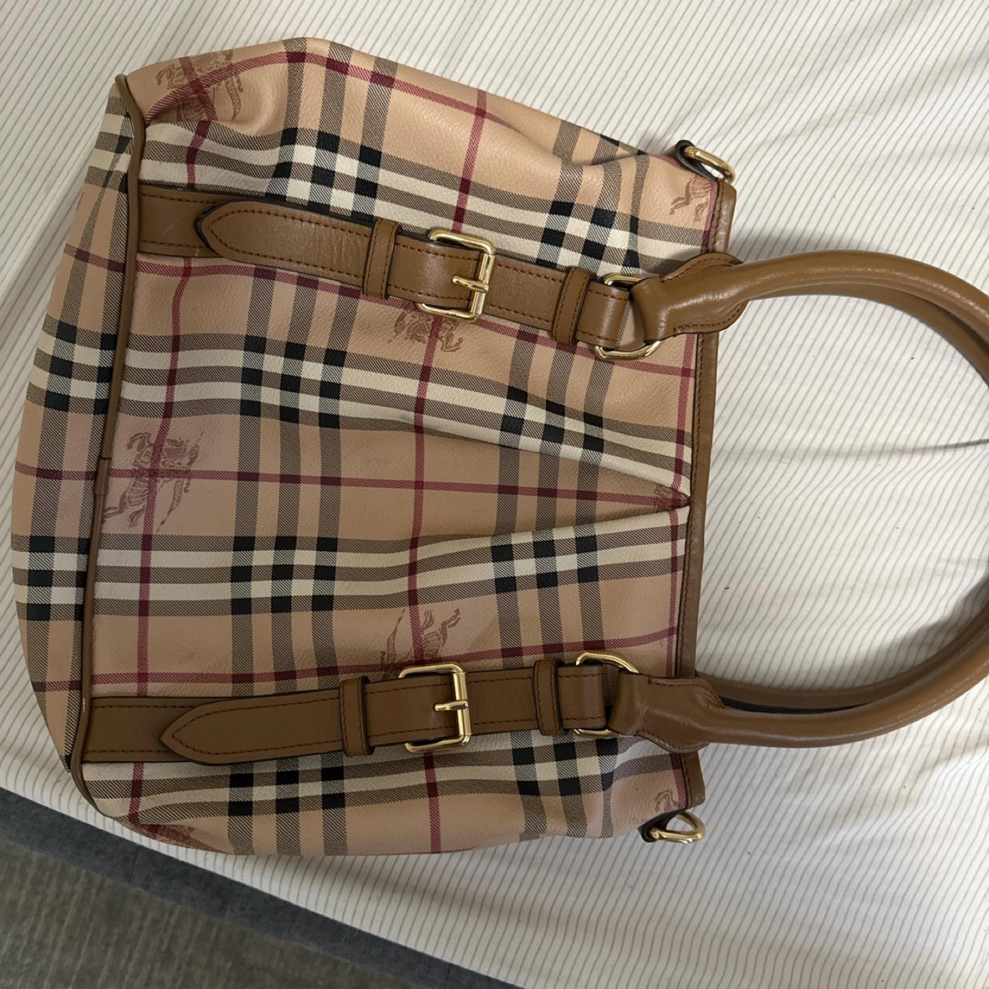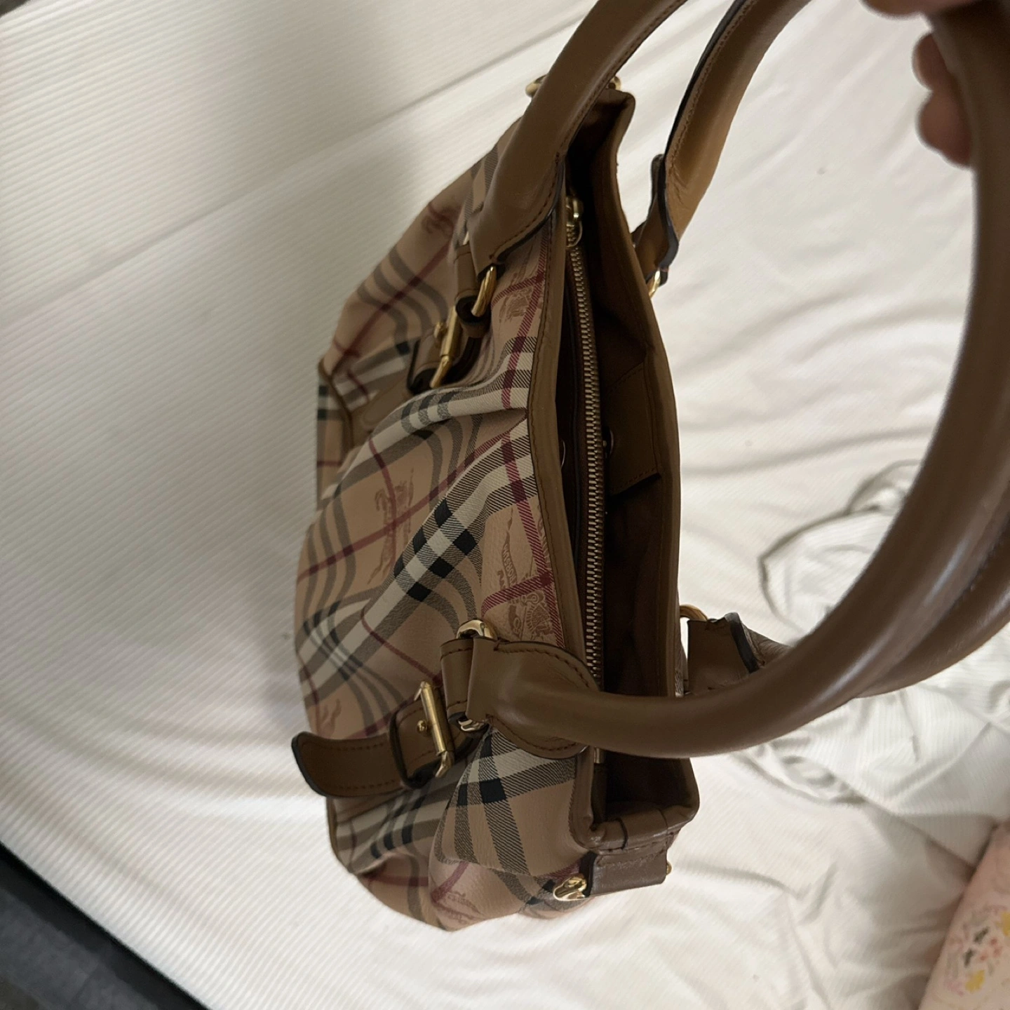 60Featuring a tartan design. Brown leather straps. Two top handles. This stylish bag is perfect for everyday use.