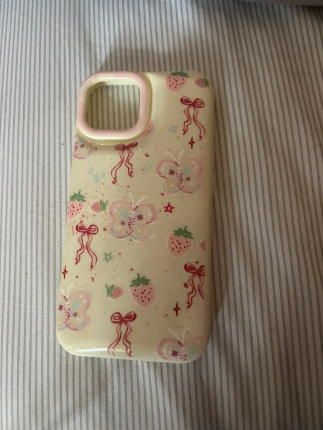 Aesthetic phone case. Decorated with butterflies and strawberries. A great way to protect your phone from scratches while also looking stylish.