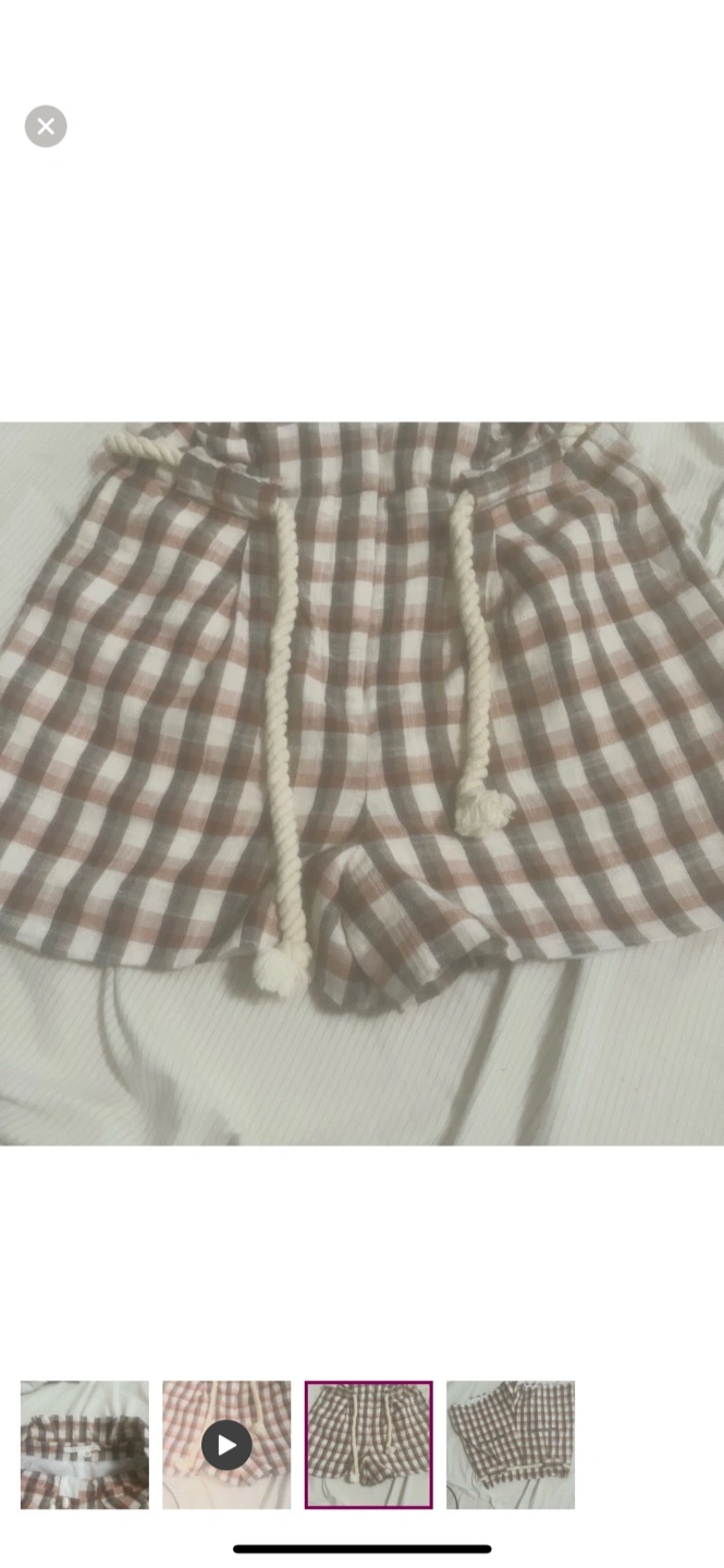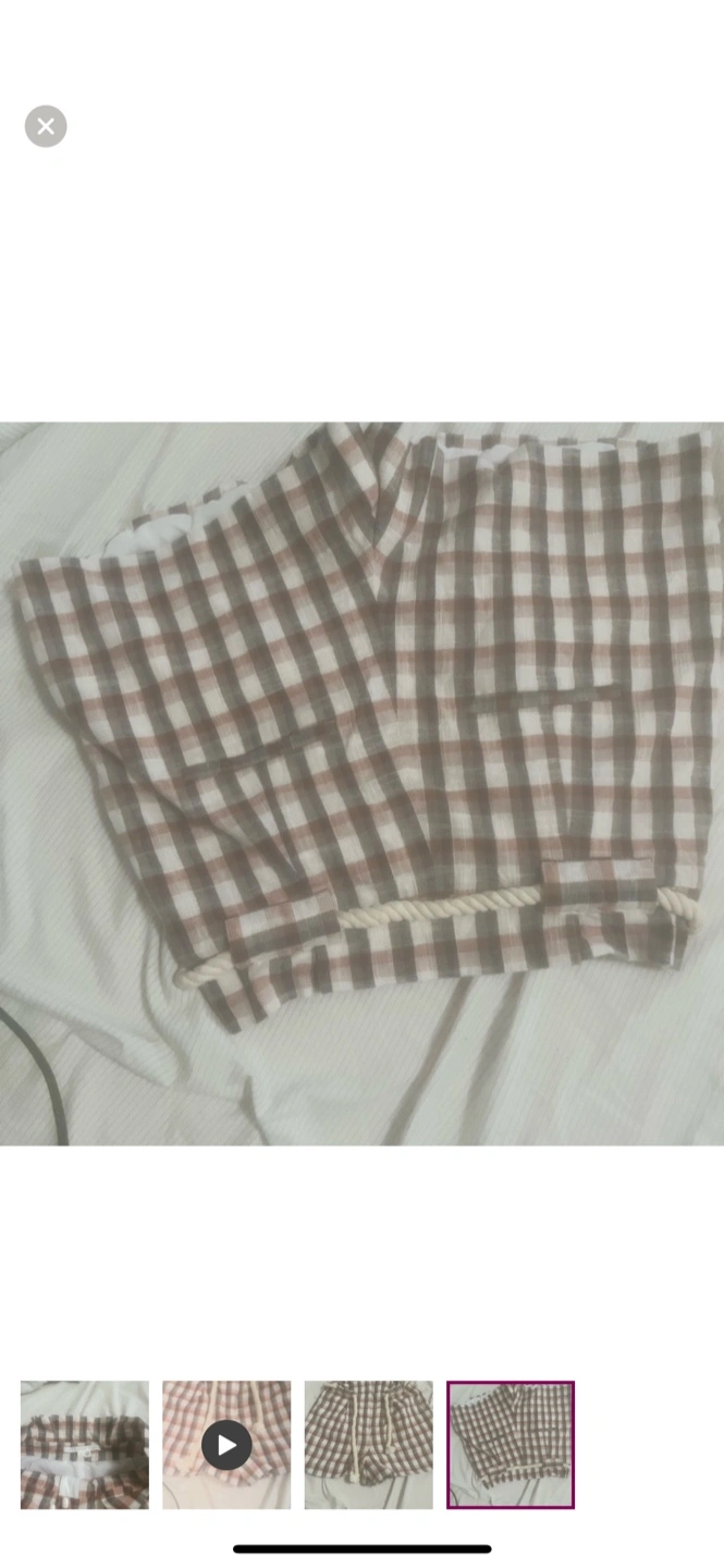 60Plaid shorts with a drawstring and a white lining. The shorts are checkered in shades of brown, pink and white. A lovely item for a relaxed day at home.