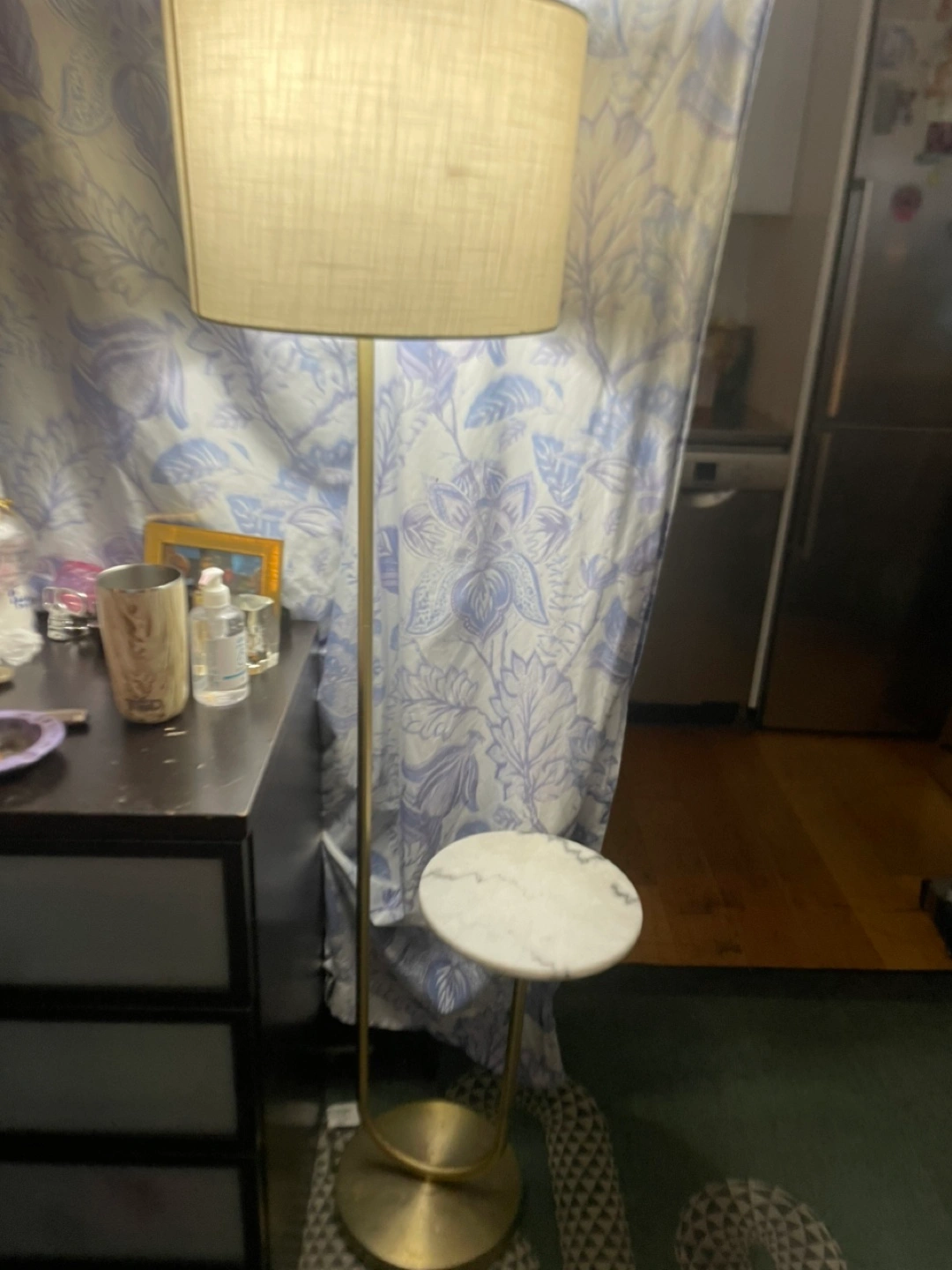 151Floor lamp. Features a lampshade. The lamp includes a side table with a marble top. It would provide the perfect lighting for your evening reading sessions. Pics added of actual bottom part