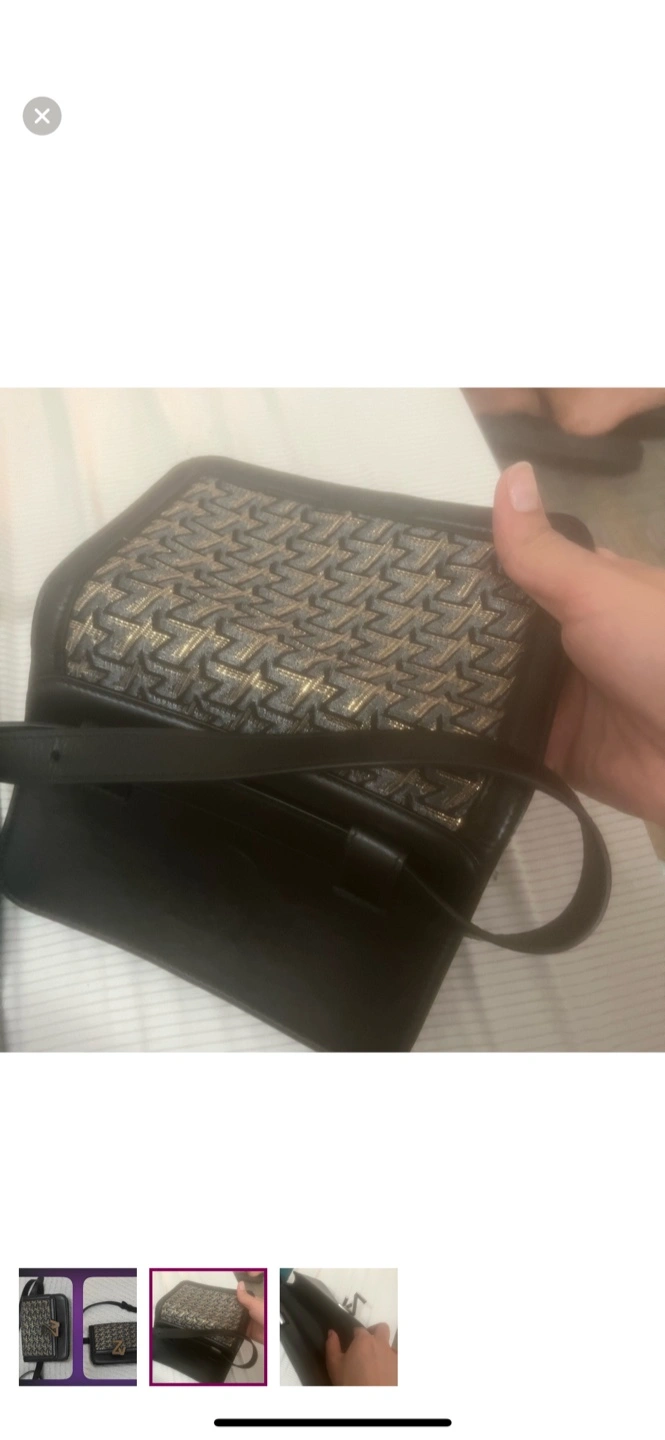 60Black crossbody bag. Featuring a unique pattern design. Adjustable strap included. A fantastic accessory to accompany you on a walk or a coffee date. Authentic