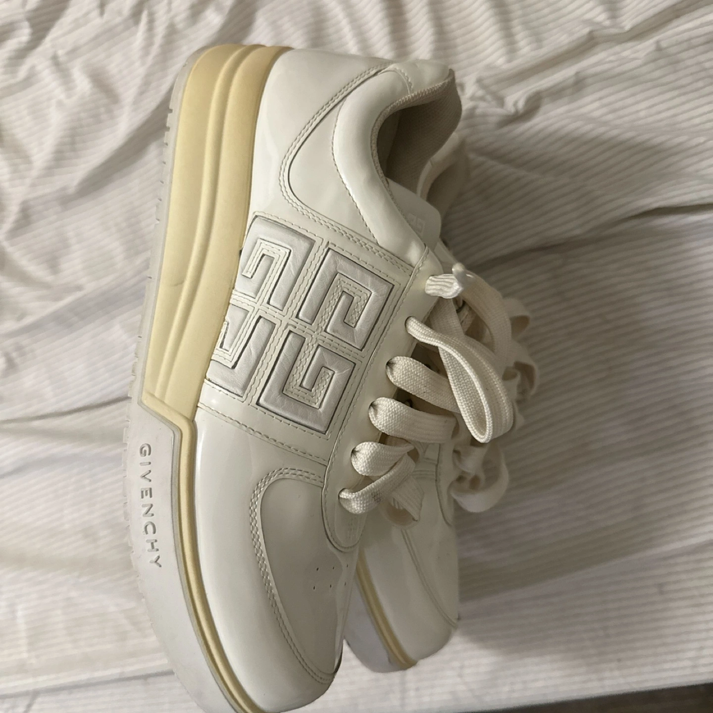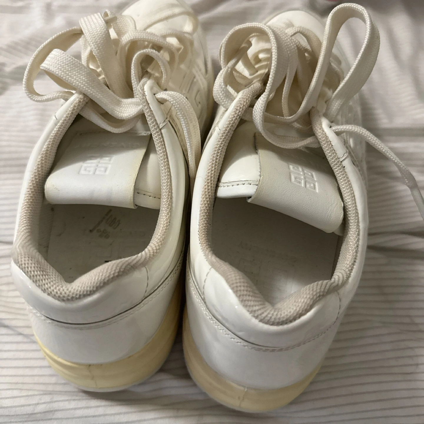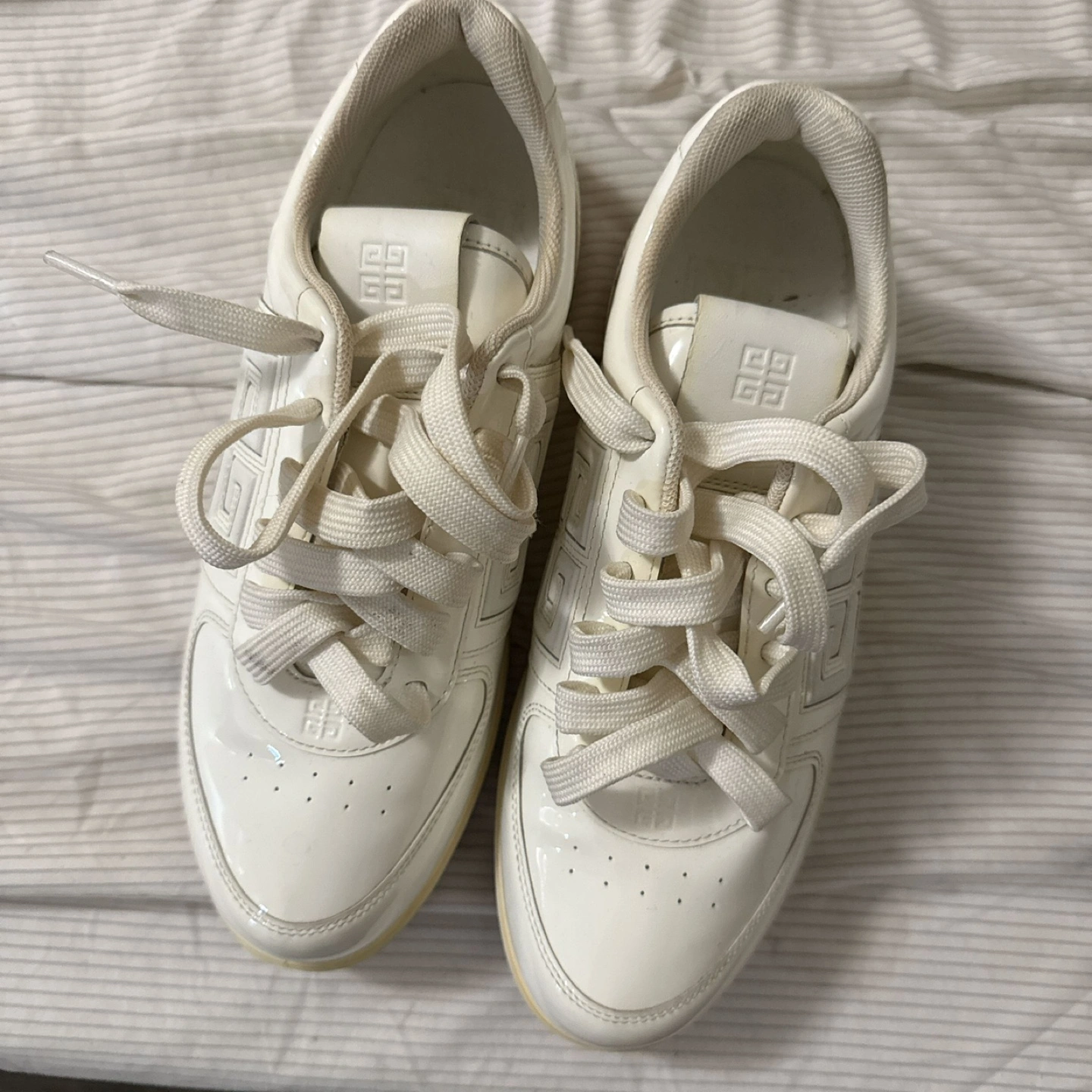 60White sneakers. Classic lace-up style. Light-colored sole. Consider wearing these for a relaxing stroll, bringing comfort to your day.