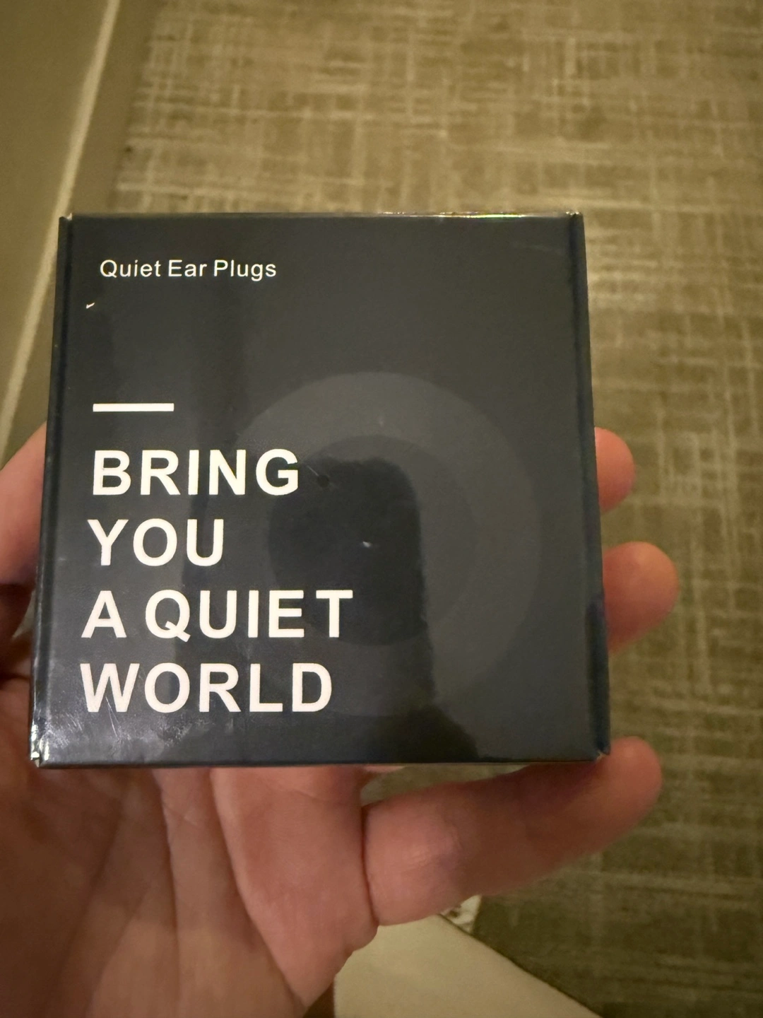 Perfect for peaceful relaxation or blocking out unwanted noise, this item is just what you need. The packaging is a dark color and has the words bring you a quiet world.