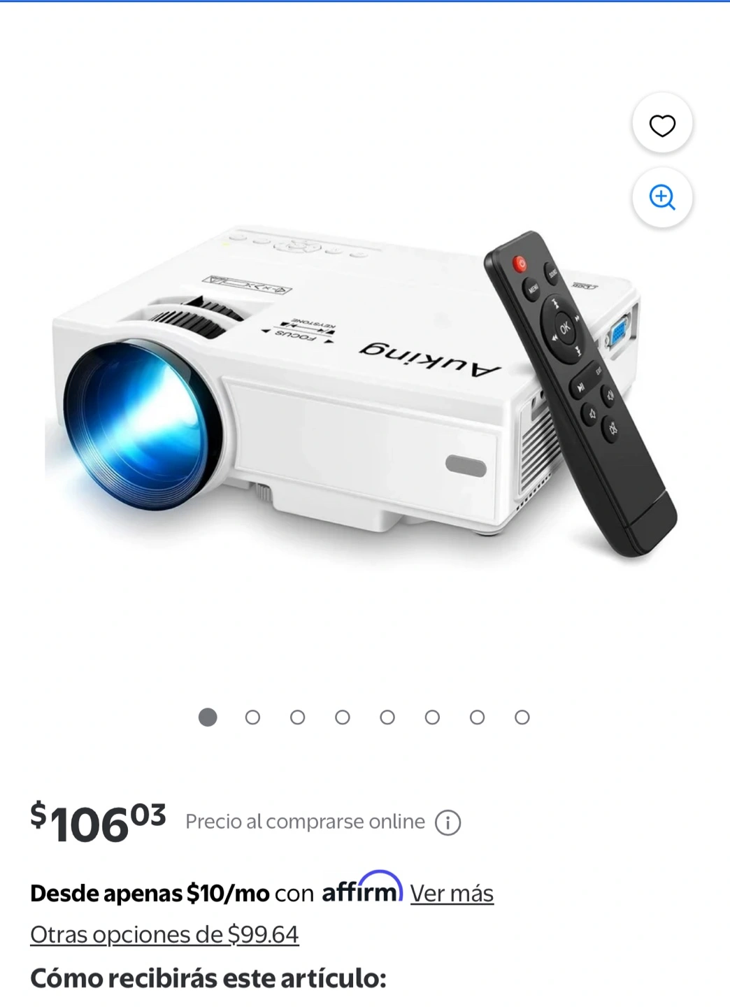 60A white projector, with a dark remote control, a focus and keystone adjusting dial. The projector has the brand name on its top. This projector can make the perfect backdrop for movie nights at home.