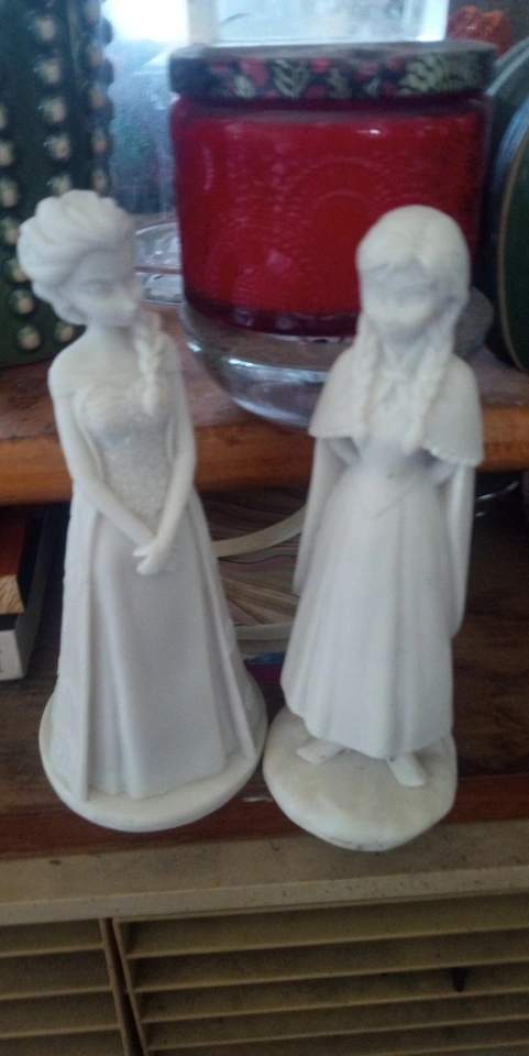 584White figurines, likely made of ceramic. Two figurines side by side. Could make for a lovely and peaceful decor piece.