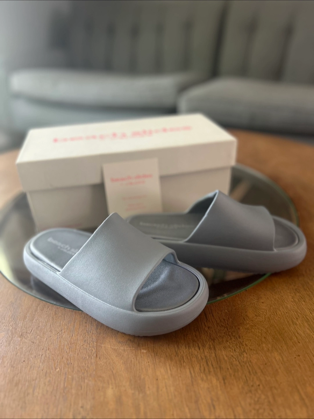 Stylish slides, perfect for easy wear. Comes in their original box. Take a deep breath and just slip them on.