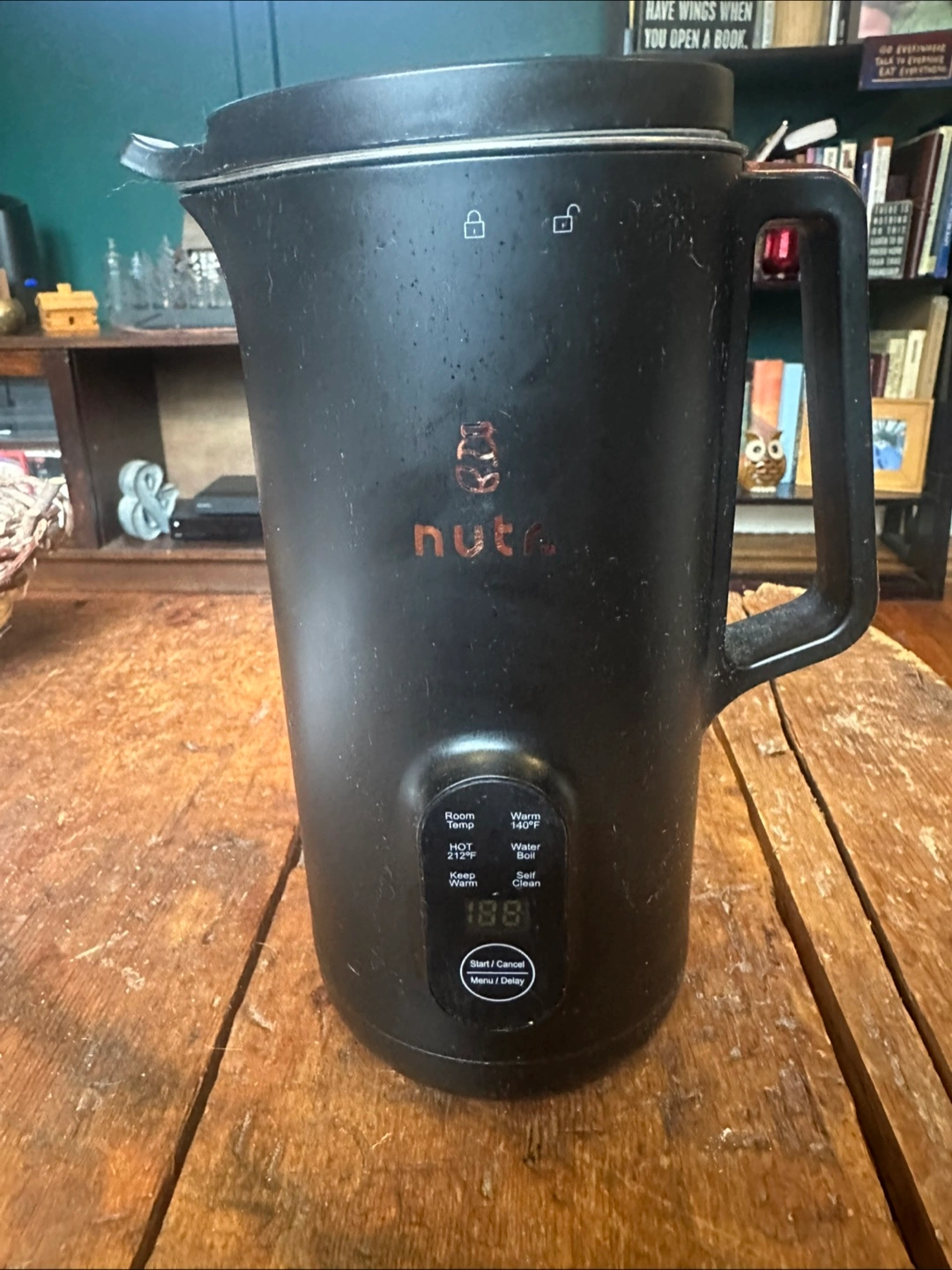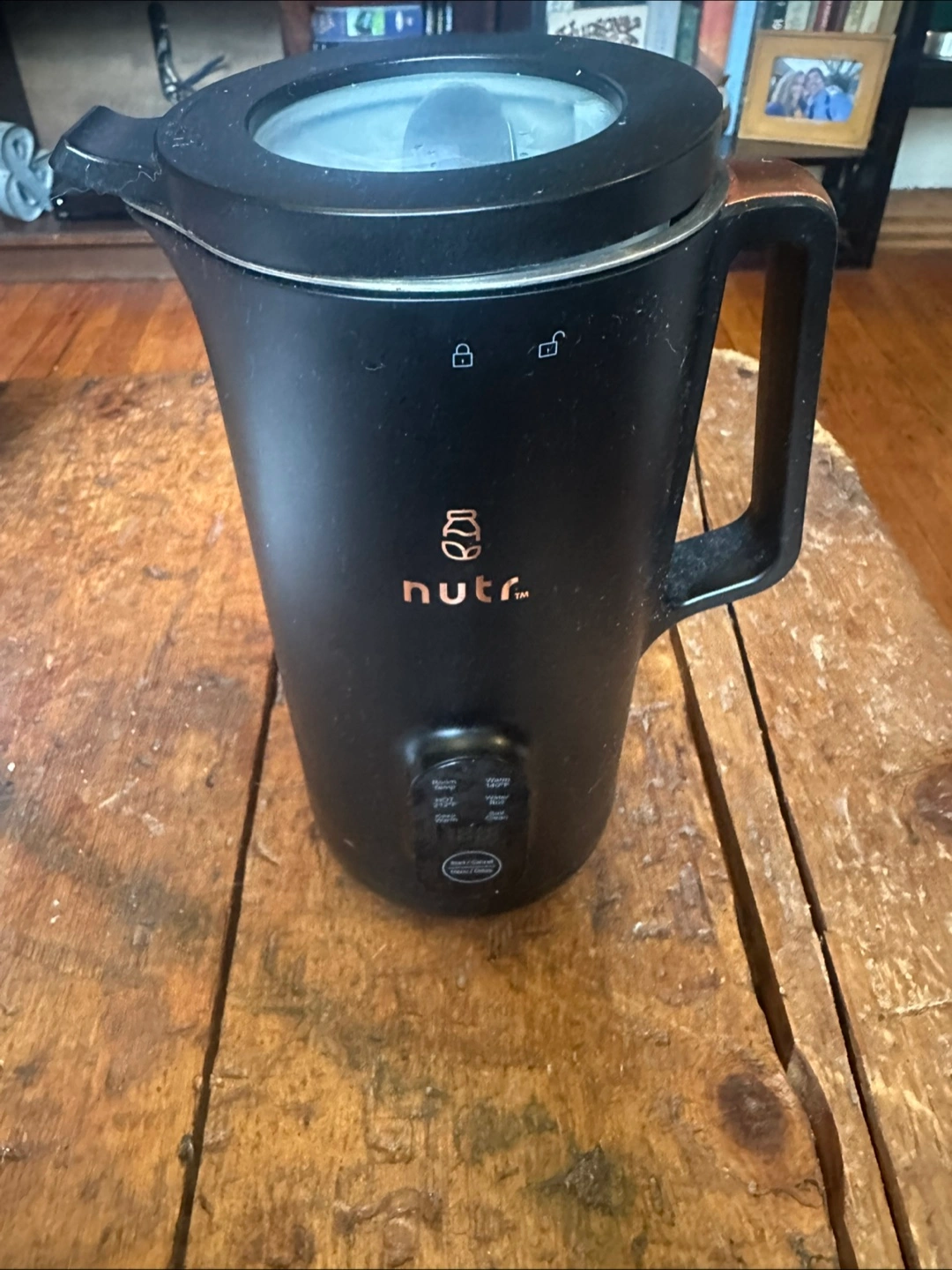 189Black Nutr machine. A large size appliance with a top lid and handle. Has a digital display screen and control buttons. The machine is perfect to help you unwind after a long day.