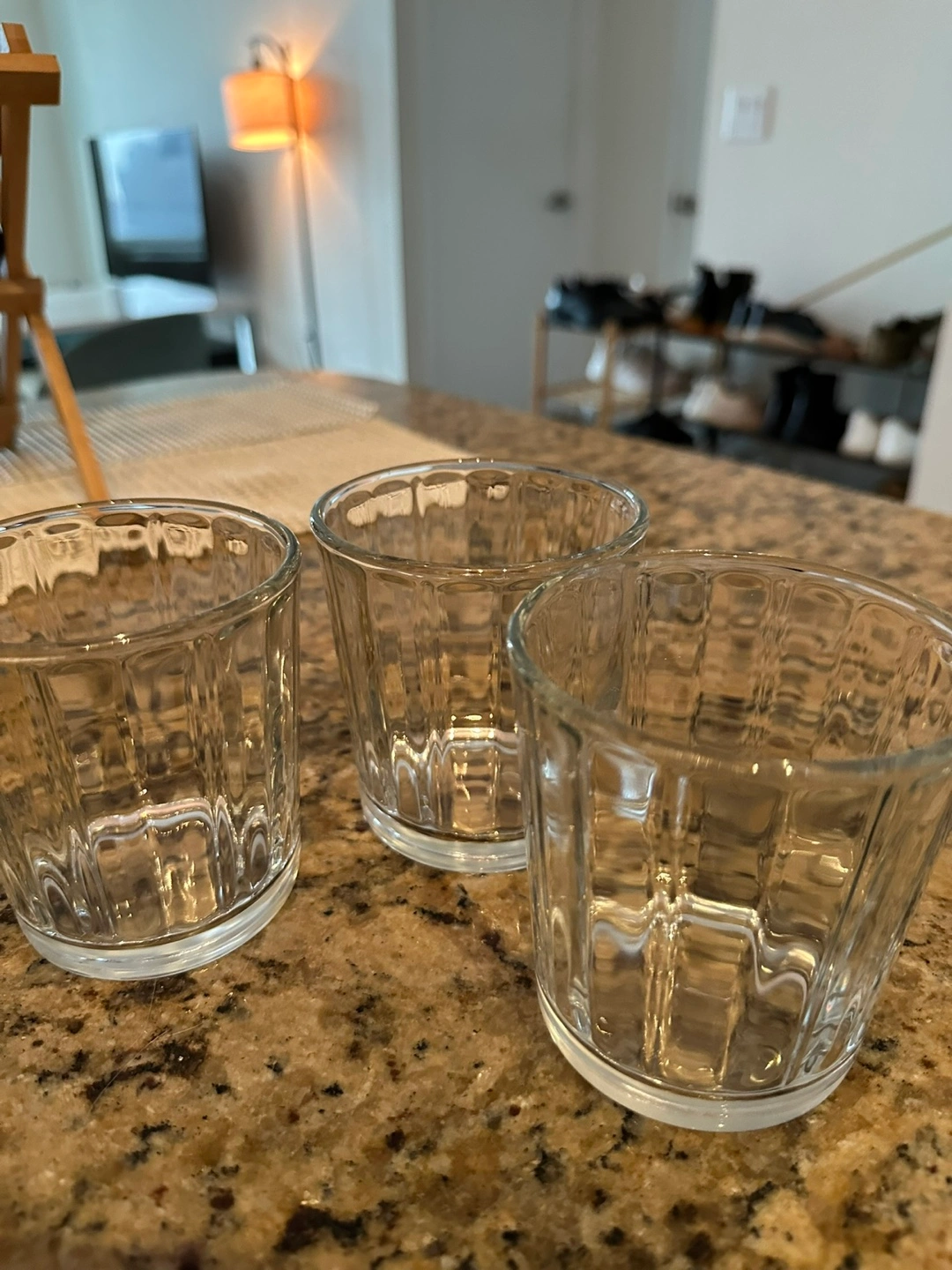 Offering a set of three drinking cups. Clear, sturdy glass material. Each glass has a unique textured design, adding visual appeal. Perfect for serving beverages to guests. Using these cups can be a great way to enjoy your drink and unwind.