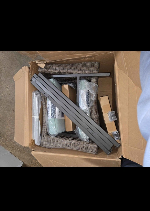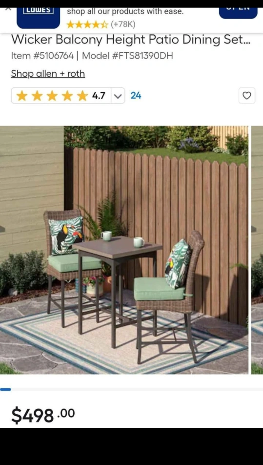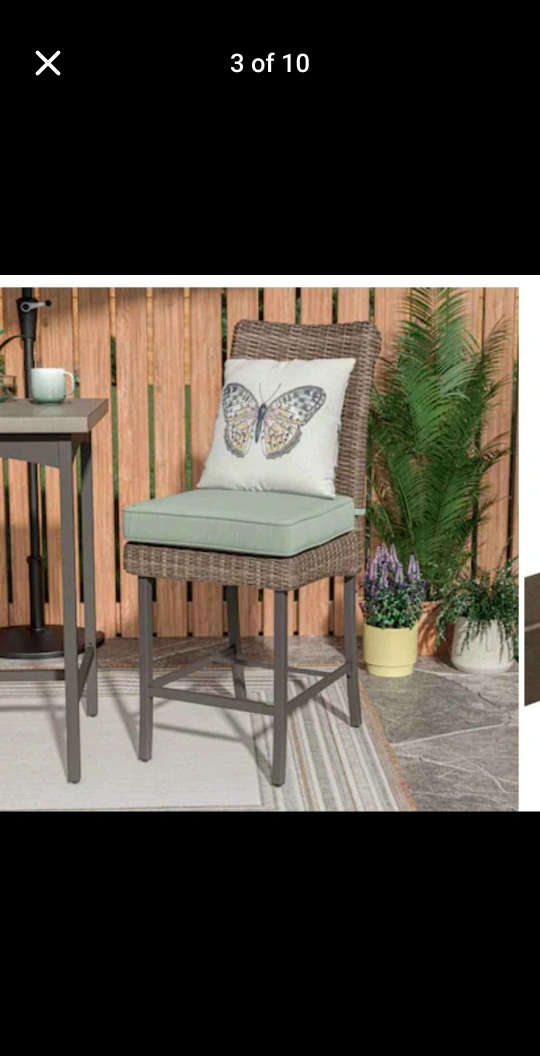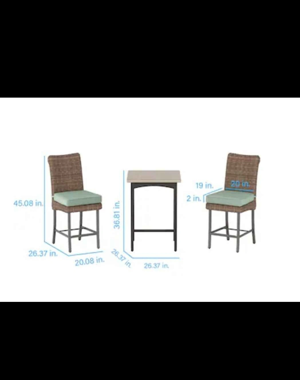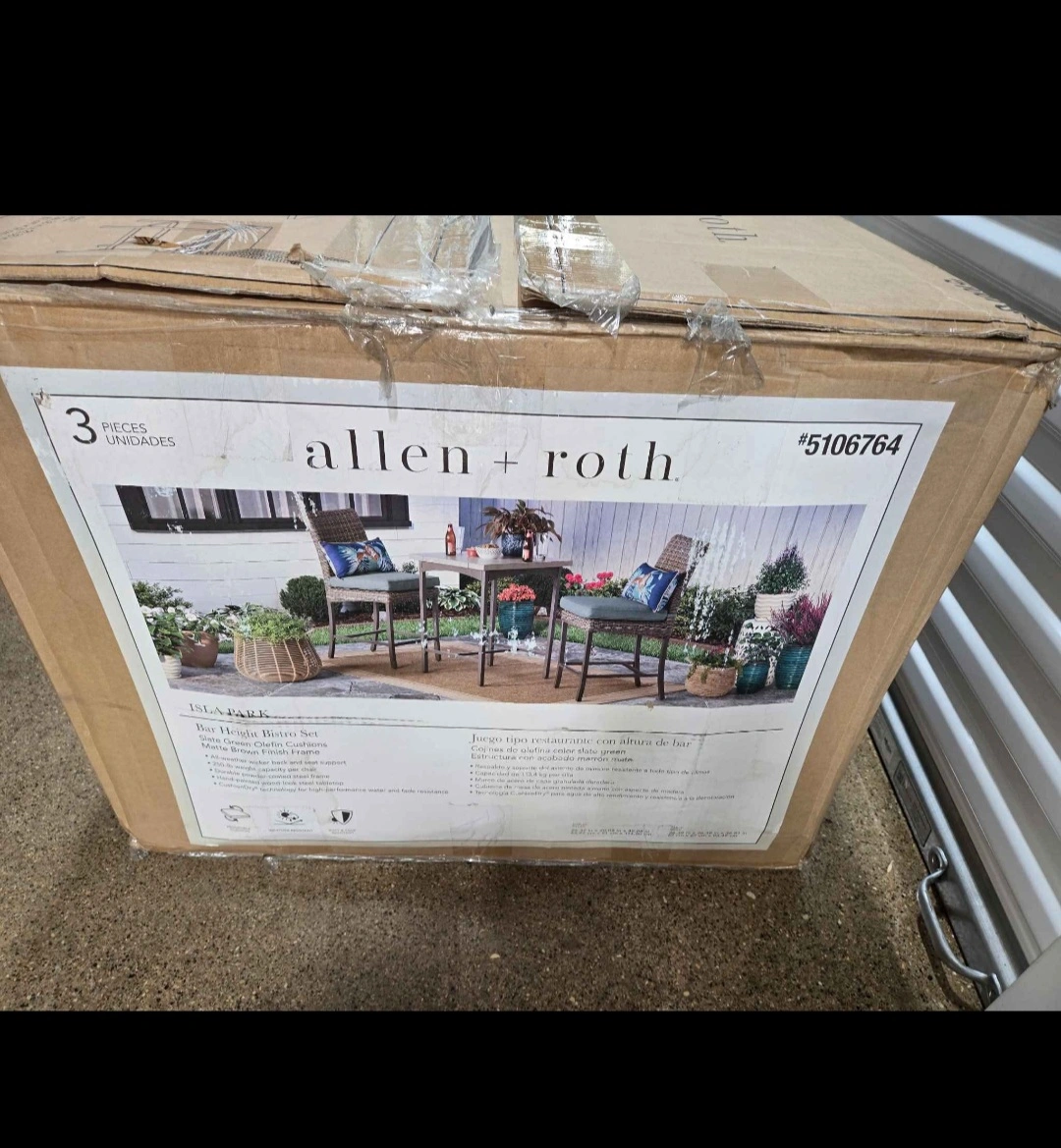 Bar height bistro set, new in box. Comes with a table and two chairs. Ideal for a relaxing outdoor space to enjoy a cup of coffee or tea.