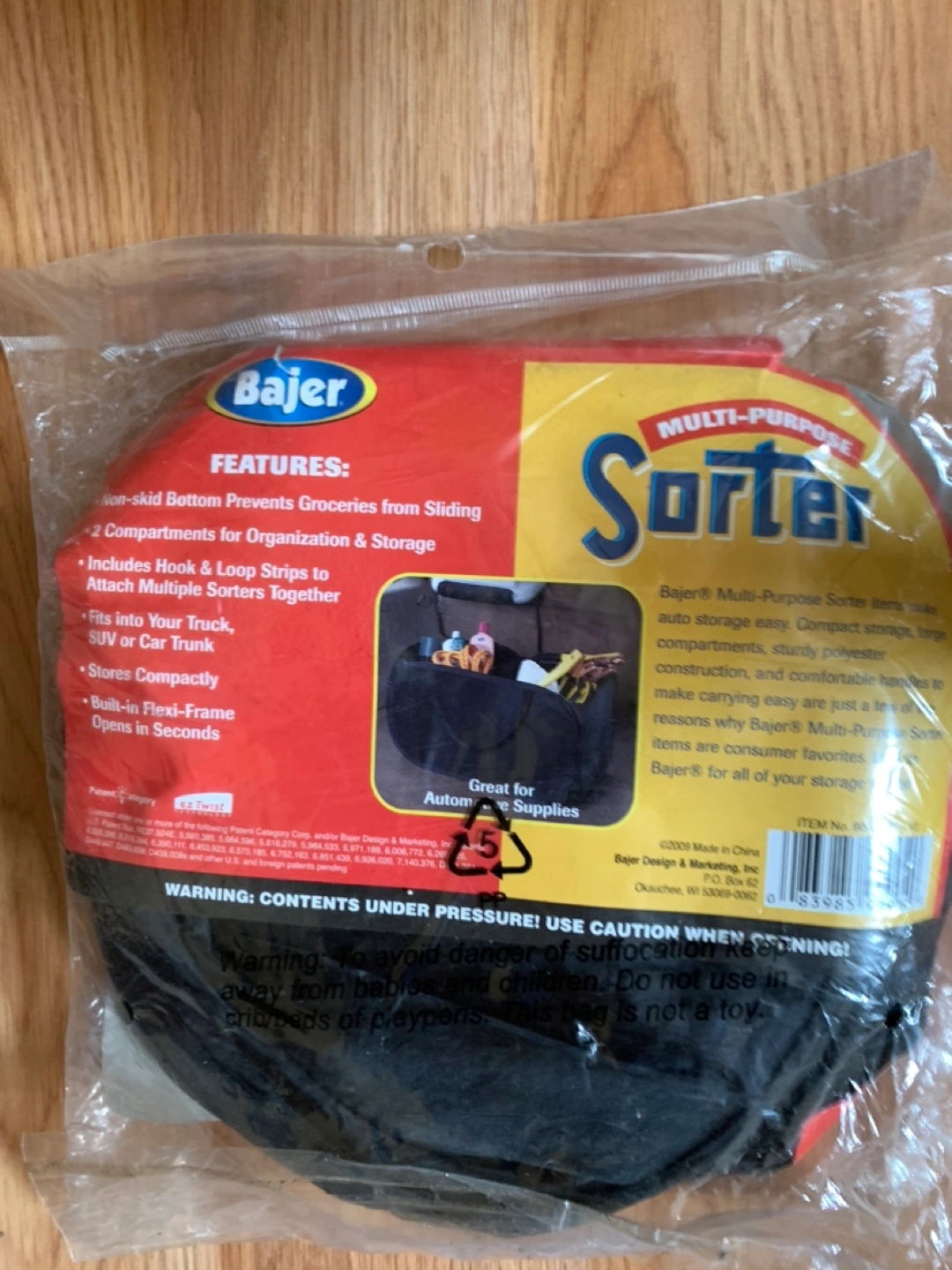 It is a Multi-Purpose Sorter for auto storage. It appears to have multiple compartments. This would be the perfect item for someone who is looking for something to help keep their car organized.
