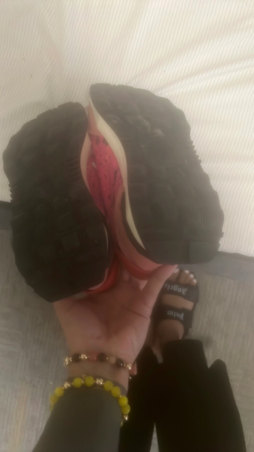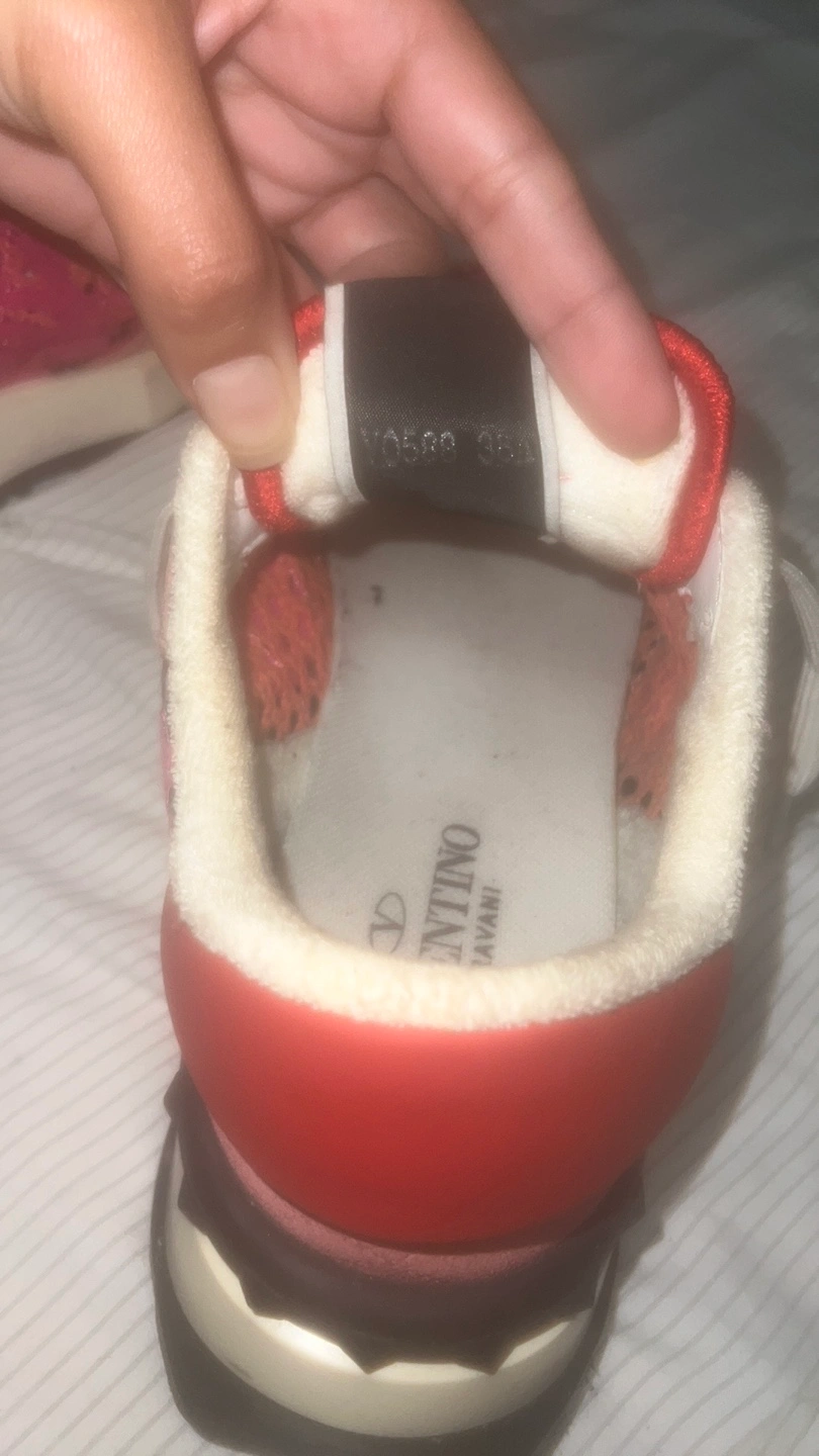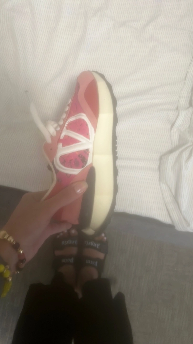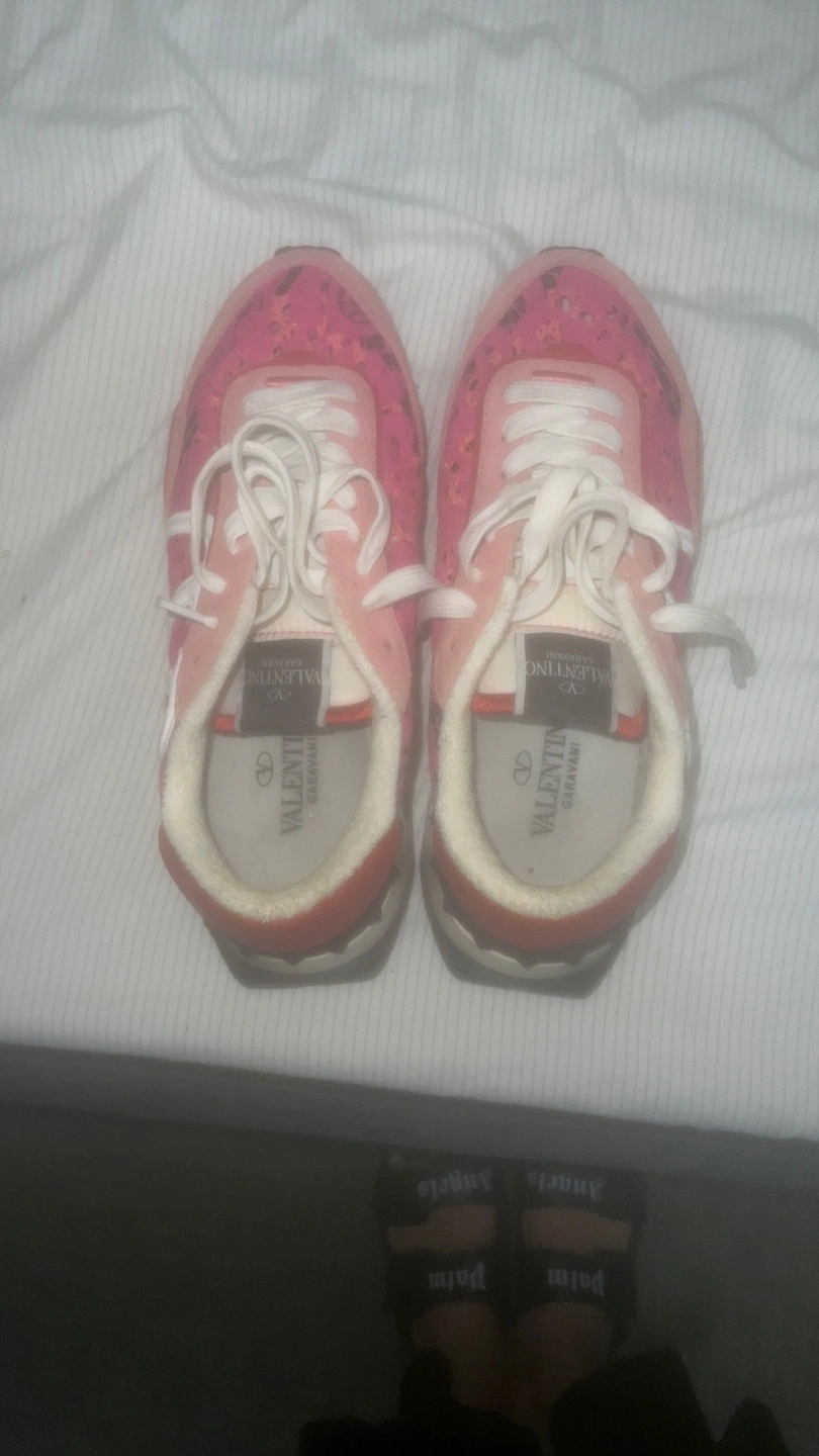 60Pink and white sneakers. A pair of sneakers with laces. The brand name is visible inside the shoe. These shoes are perfect for a relaxed stroll in the park.