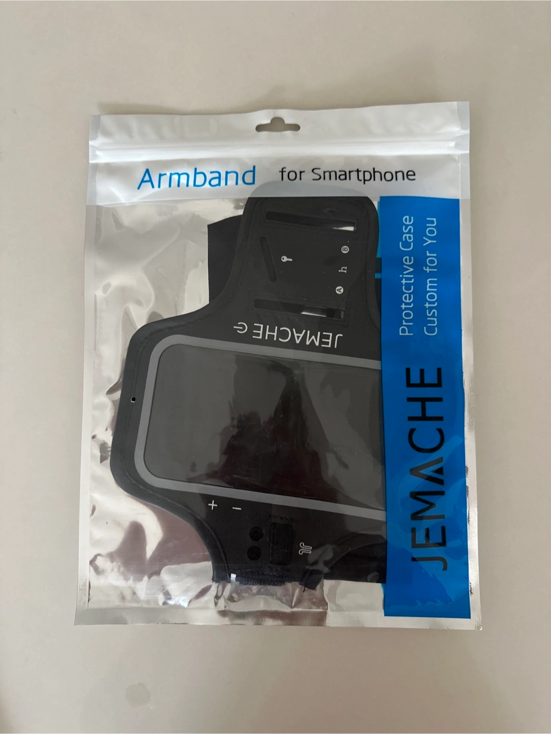A new armband for smartphones - fits iPhone 14 Pro Max, 13 Pro Max, and 14 Plus. Black color. Includes a clear viewing window. Provides a comfortable way to hold your phone during workouts.