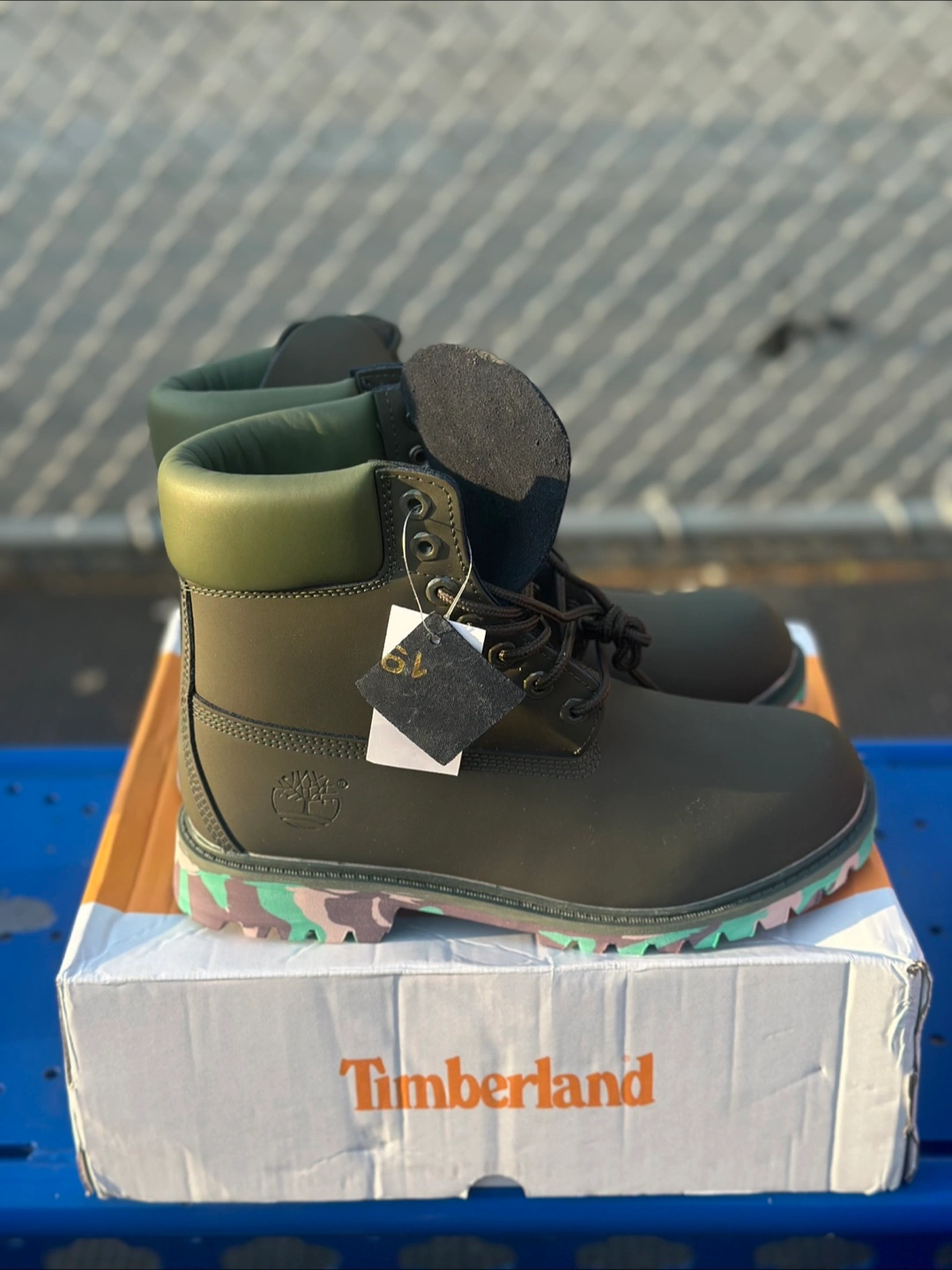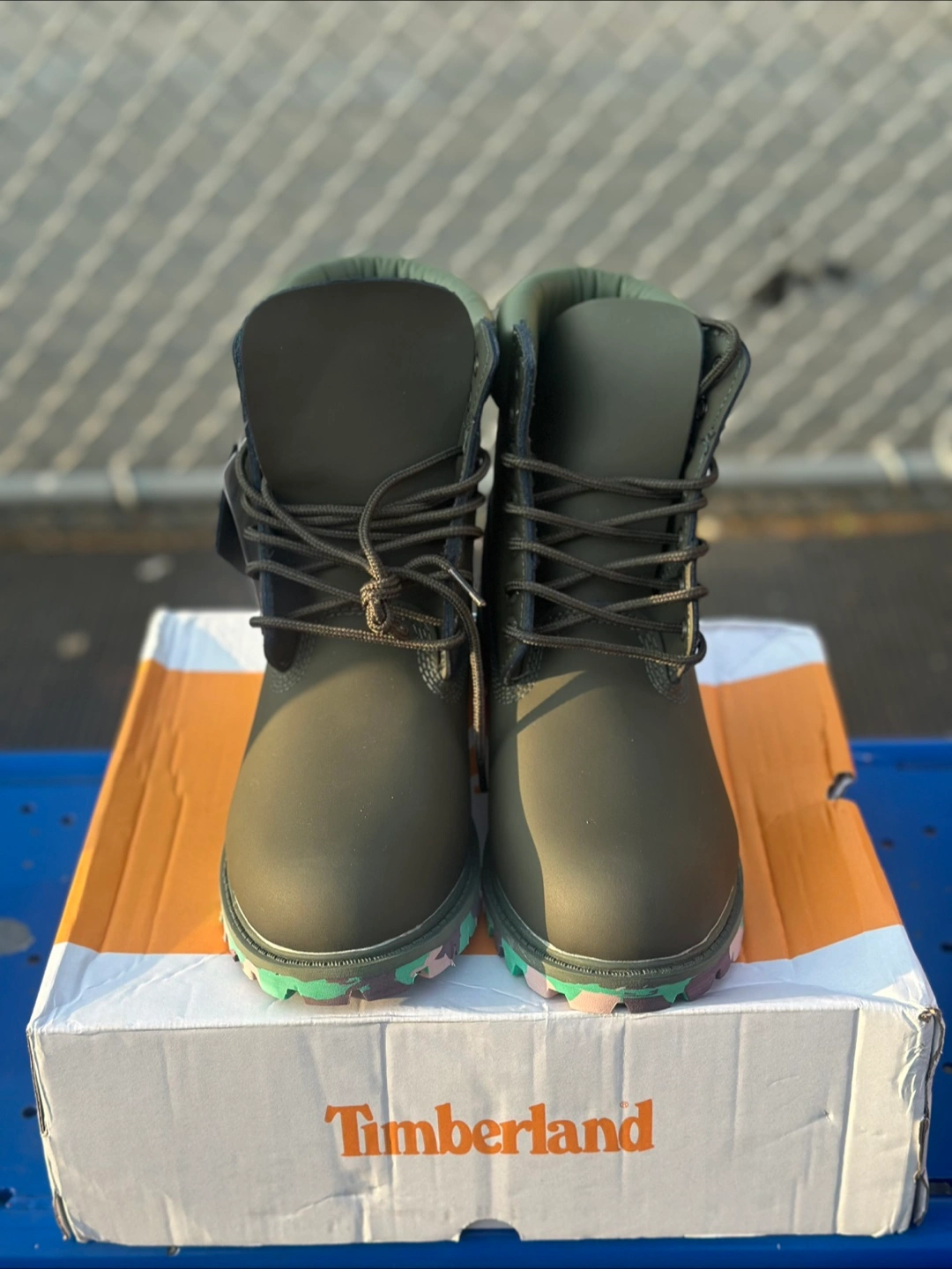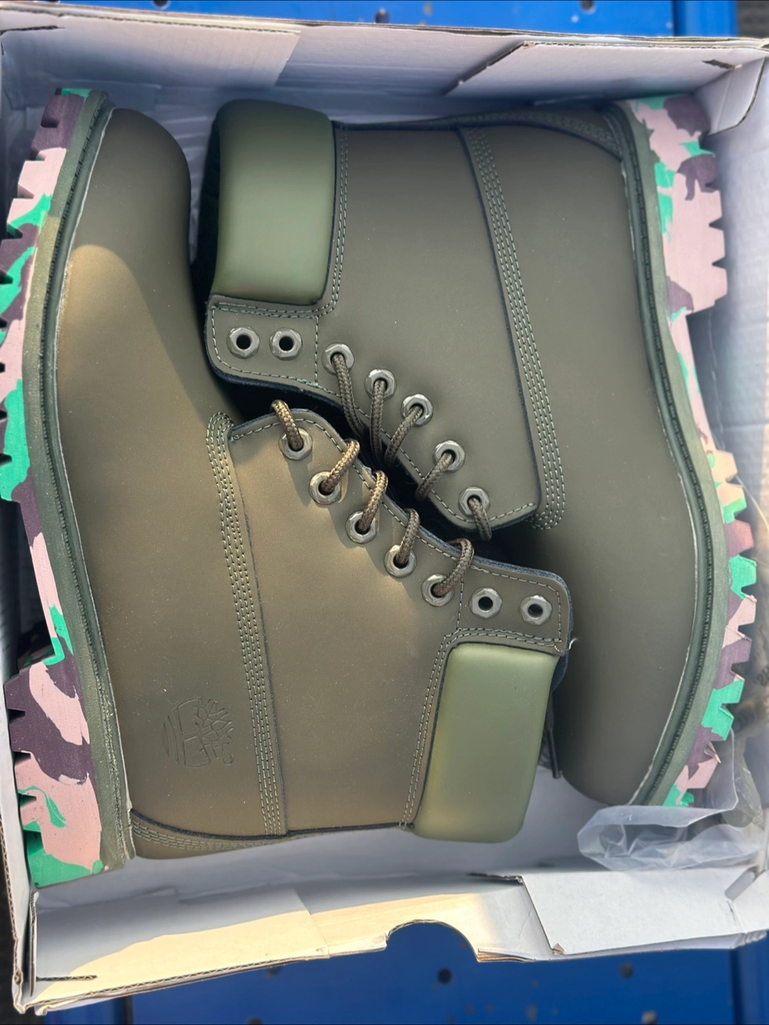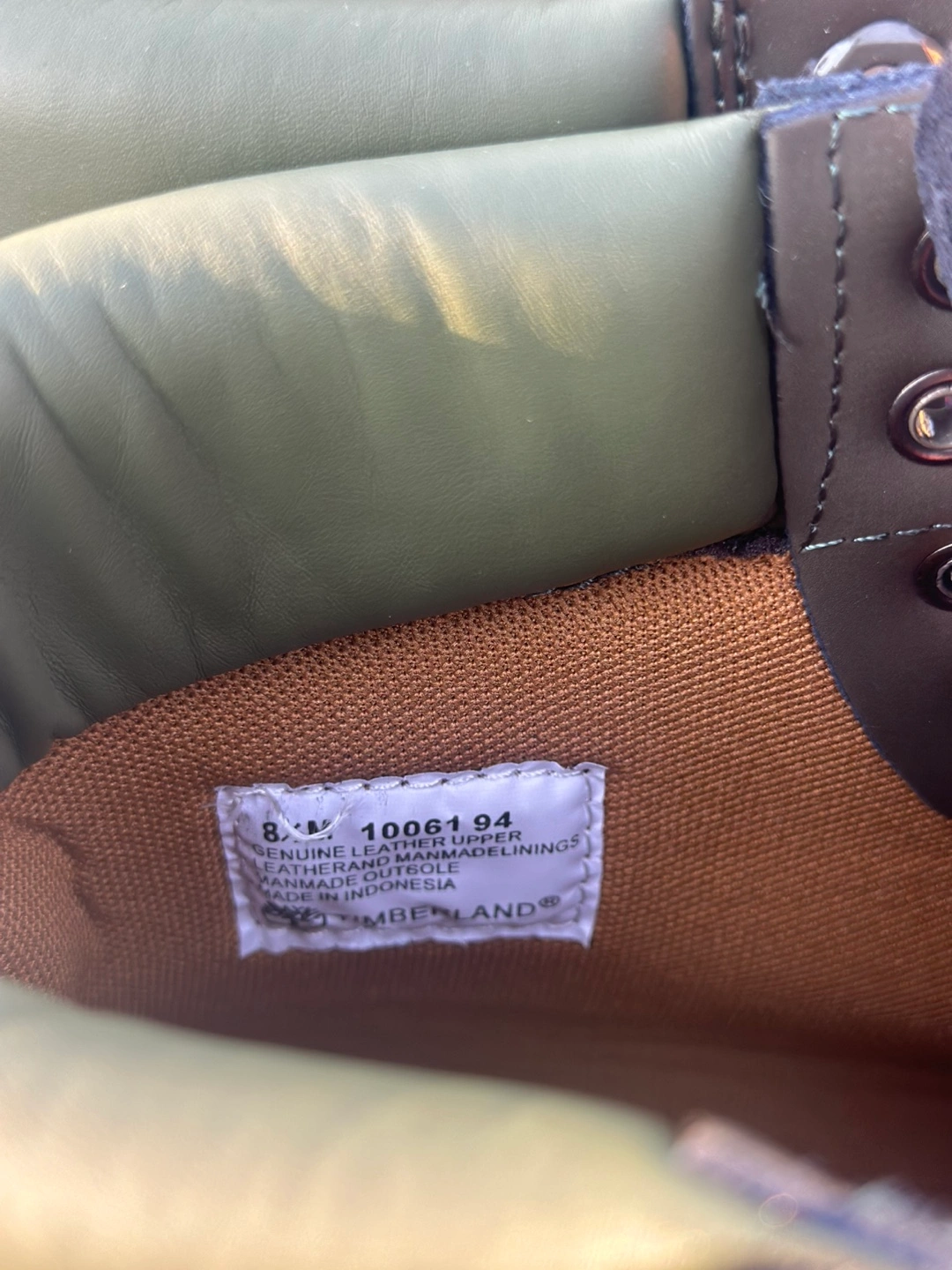 411Brand new boots in an olive green colorway. Feature black laces and a unique outsole. These would be perfect for a brisk walk on a fall day.