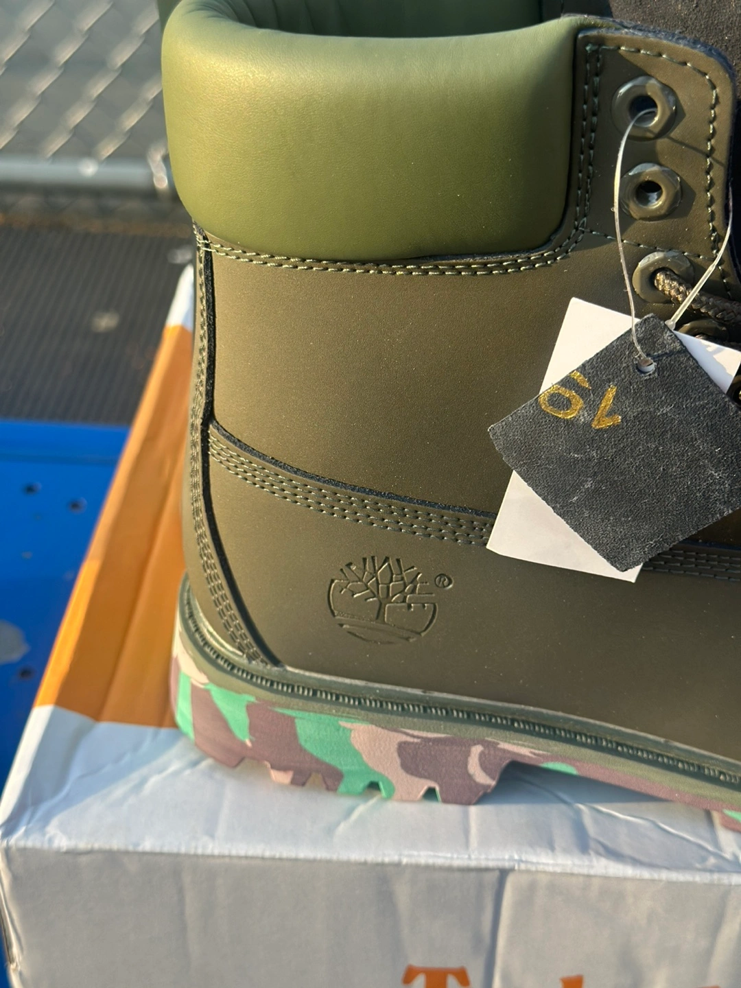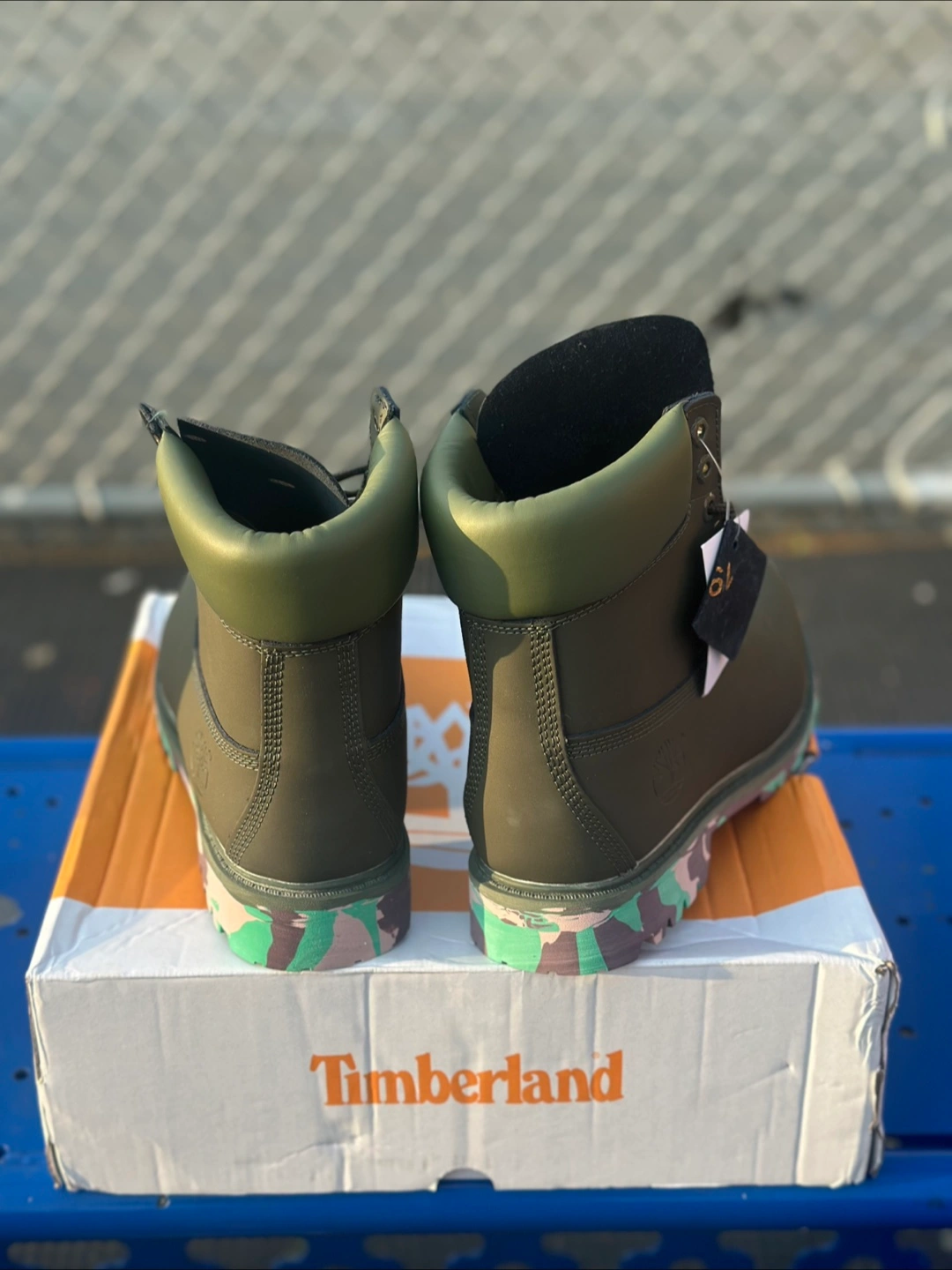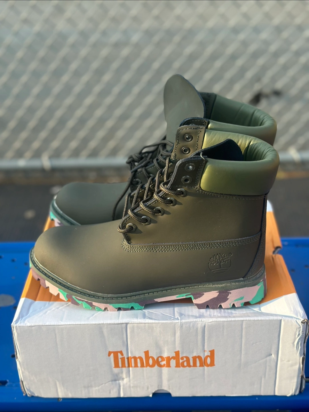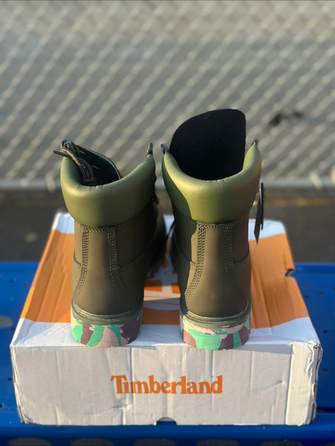 411Brand new boots in an olive green colorway. Feature black laces and a unique outsole. These would be perfect for a brisk walk on a fall day.