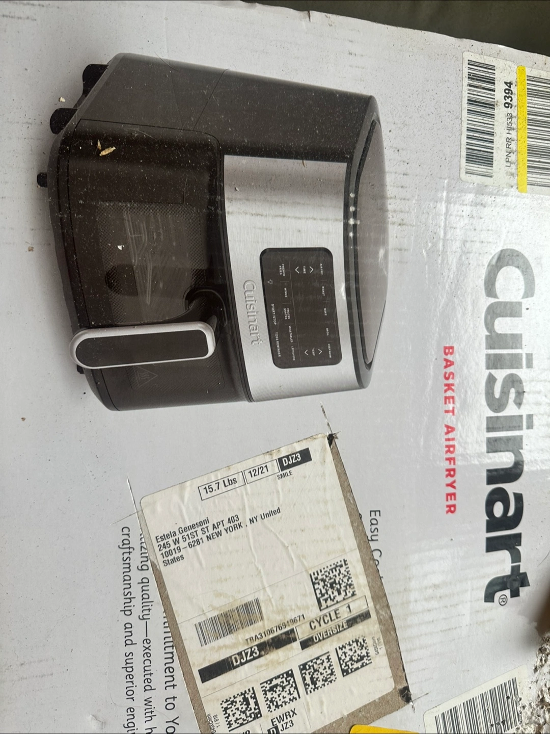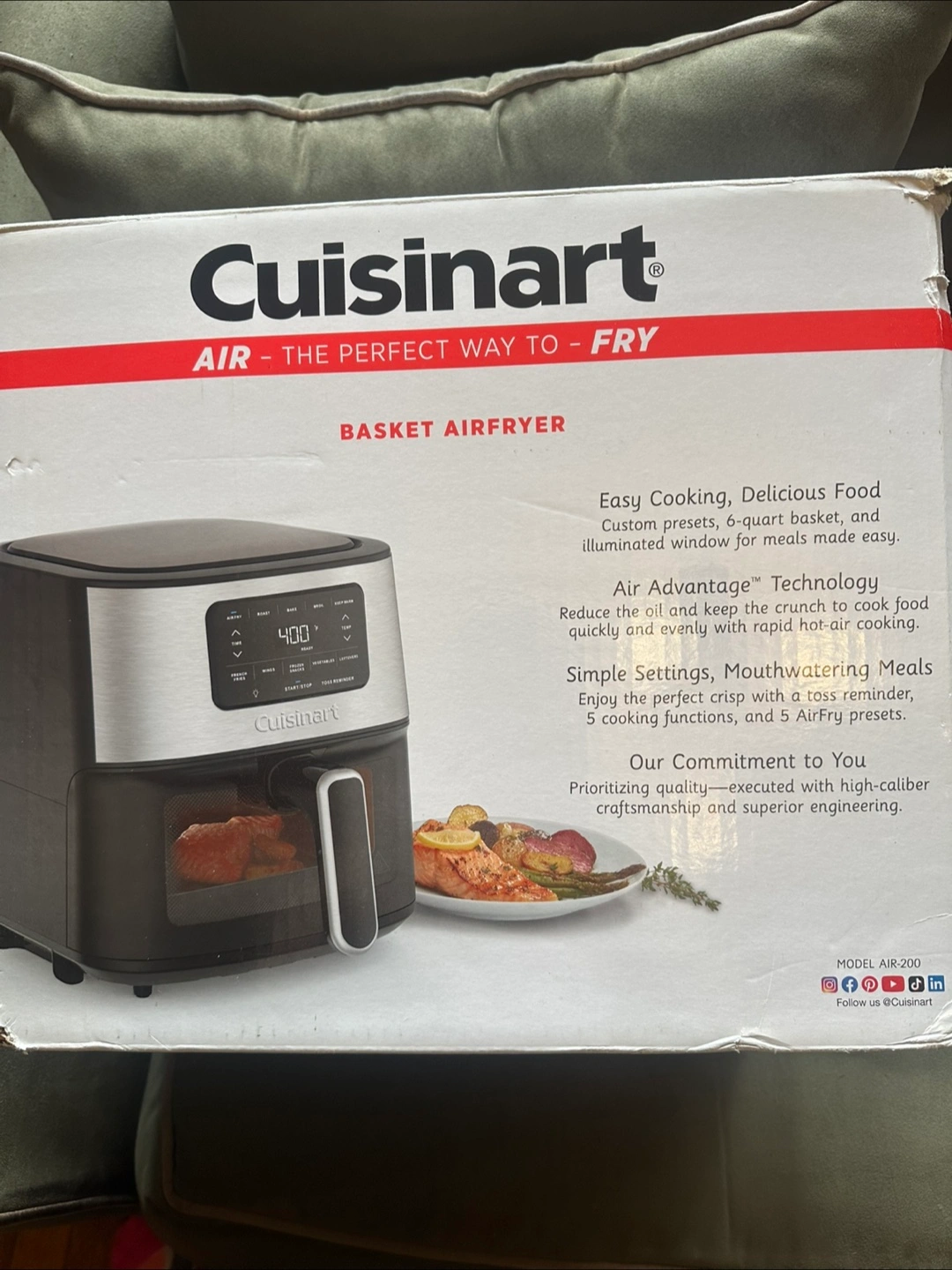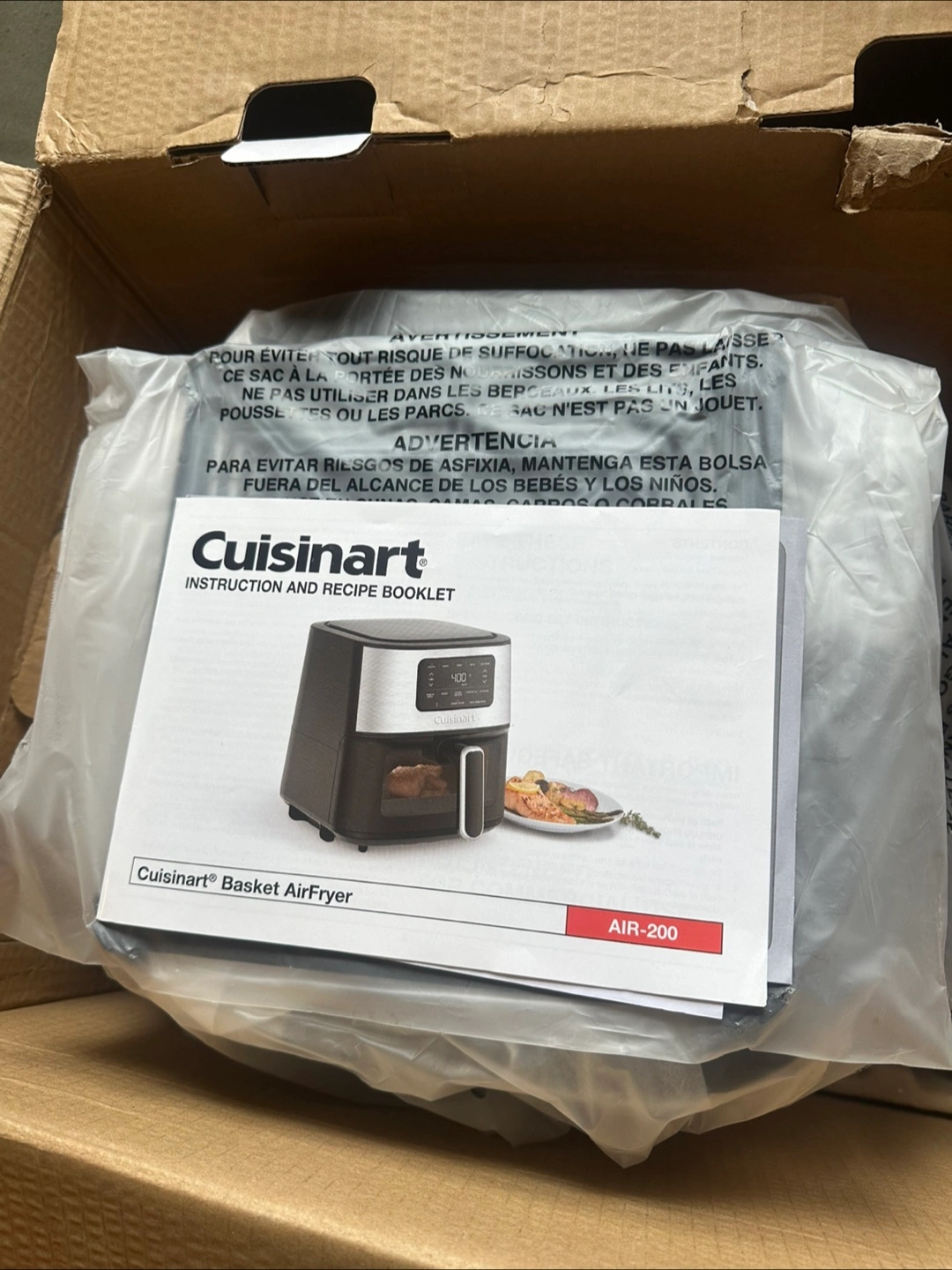 189Air fryer featuring a digital display and a pull-out basket. Has a window for viewing food. Comes with its original packaging. This air fryer is perfect for making quick and easy meals after a long day.