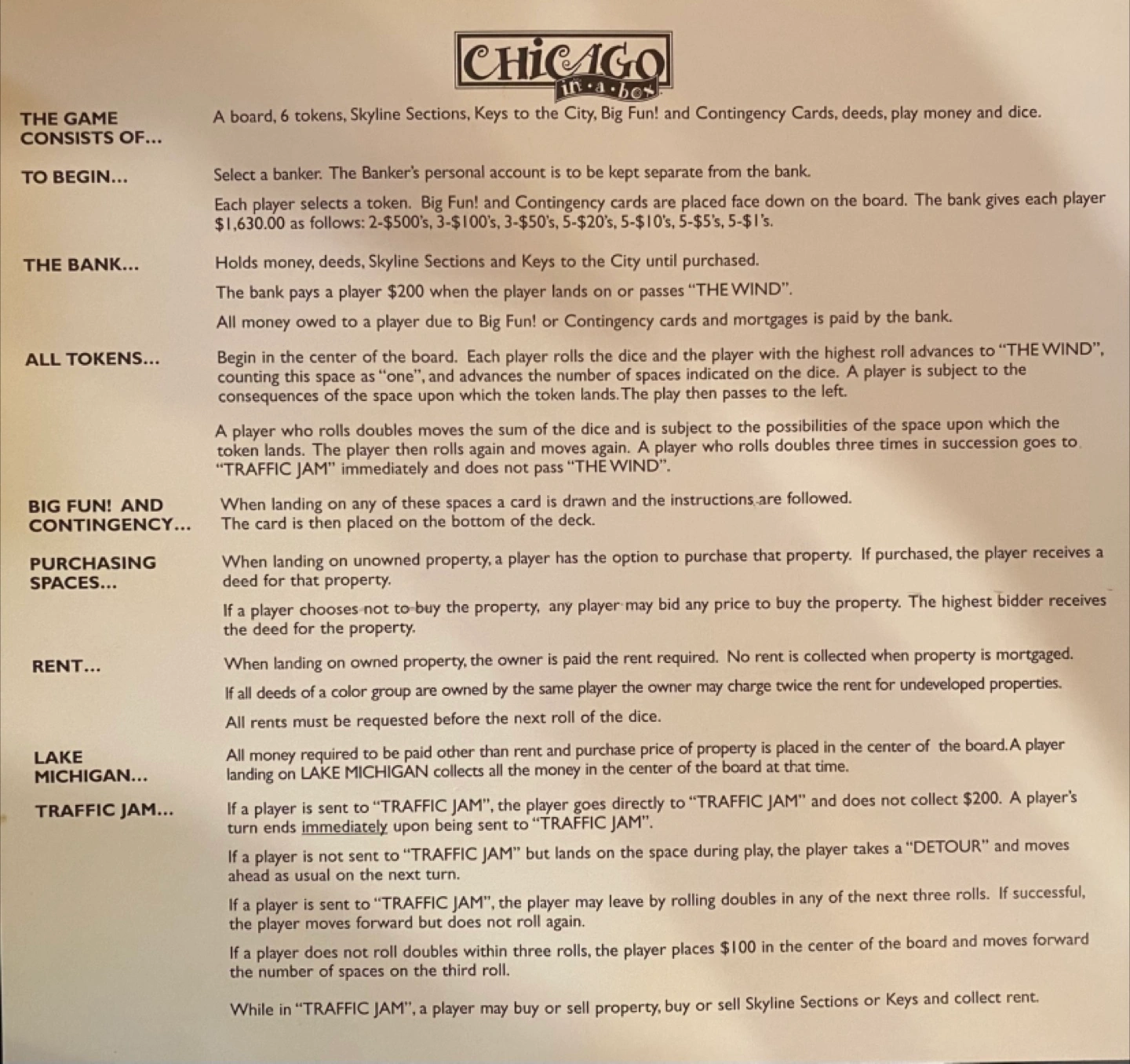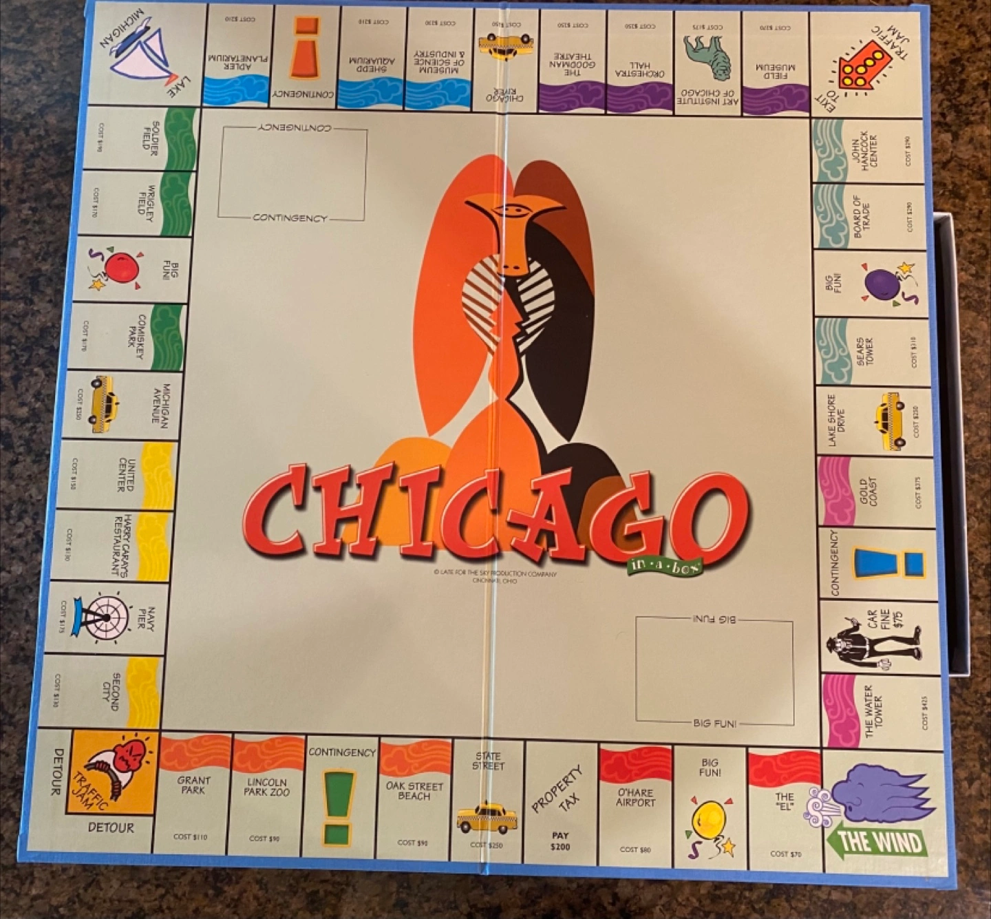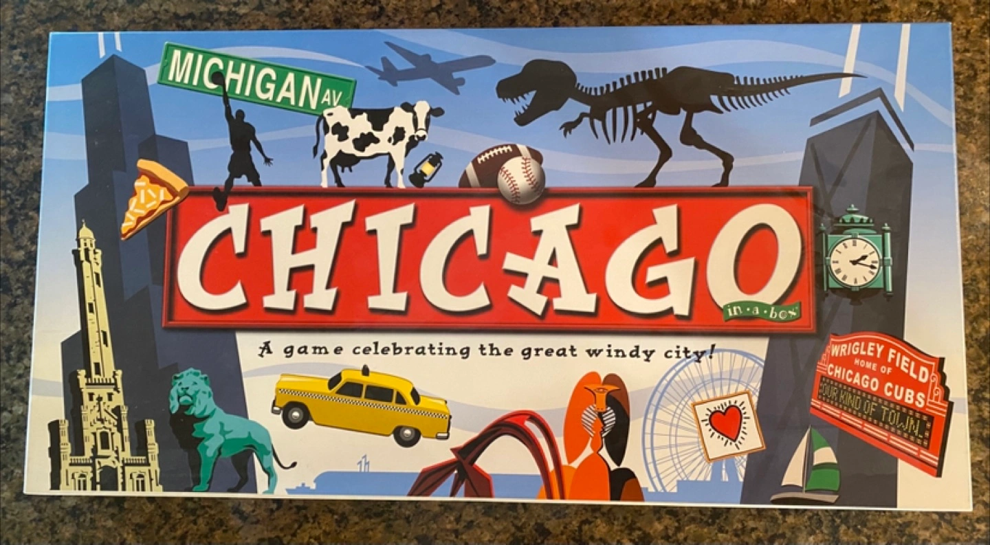 Chicago Monopoly. Plays just like the traditional game, but with a Chicago theme. All pieces, cards, and rules included. Played once. Like new condition. Note: it’s Comiskey Park in the game, as it should be. PICK UP IN THE BEVERLY NEIGHBORHOOD (South Side) OF CHICAGO.