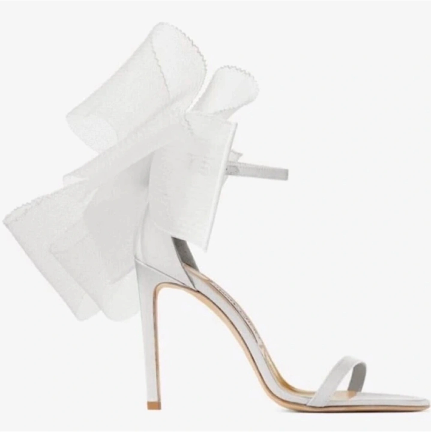 Beautiful sandals with a delicate design. Strappy heels with a bow feature. A perfect choice for any elegant occasion or wedding.