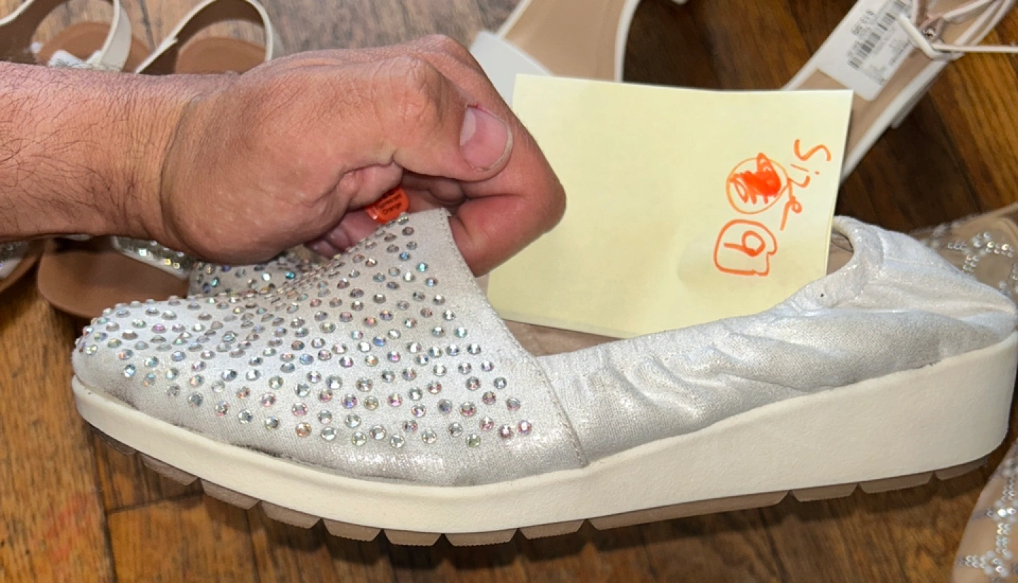 234Shoes are white, slip-on style. Embellished with gemstones. They would be great for casual outings. Size 9