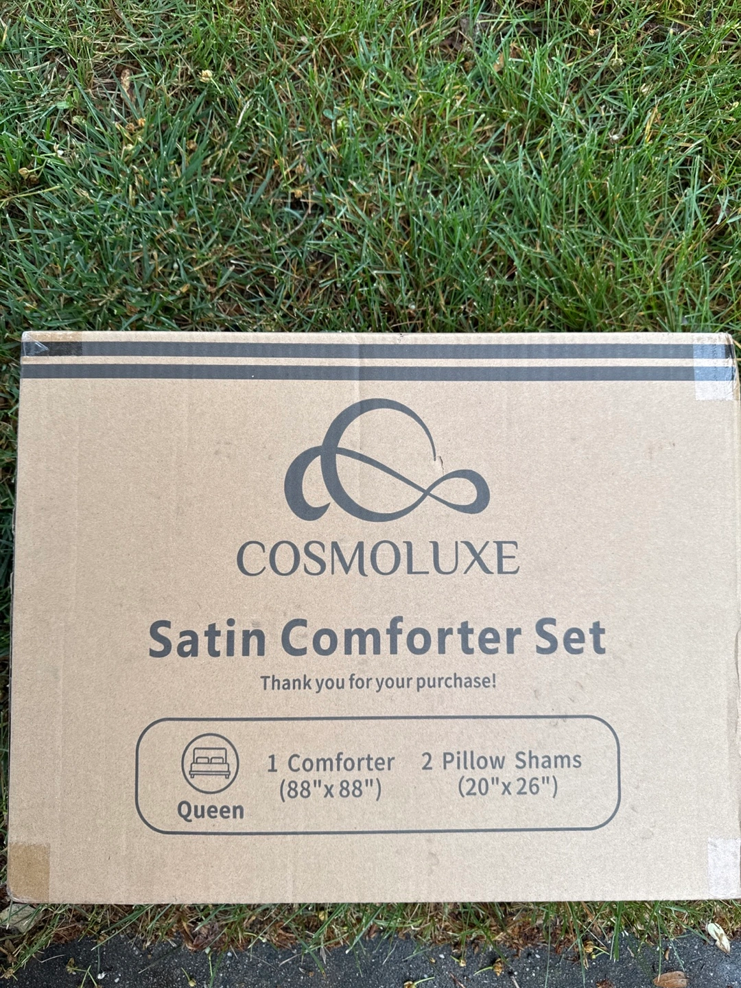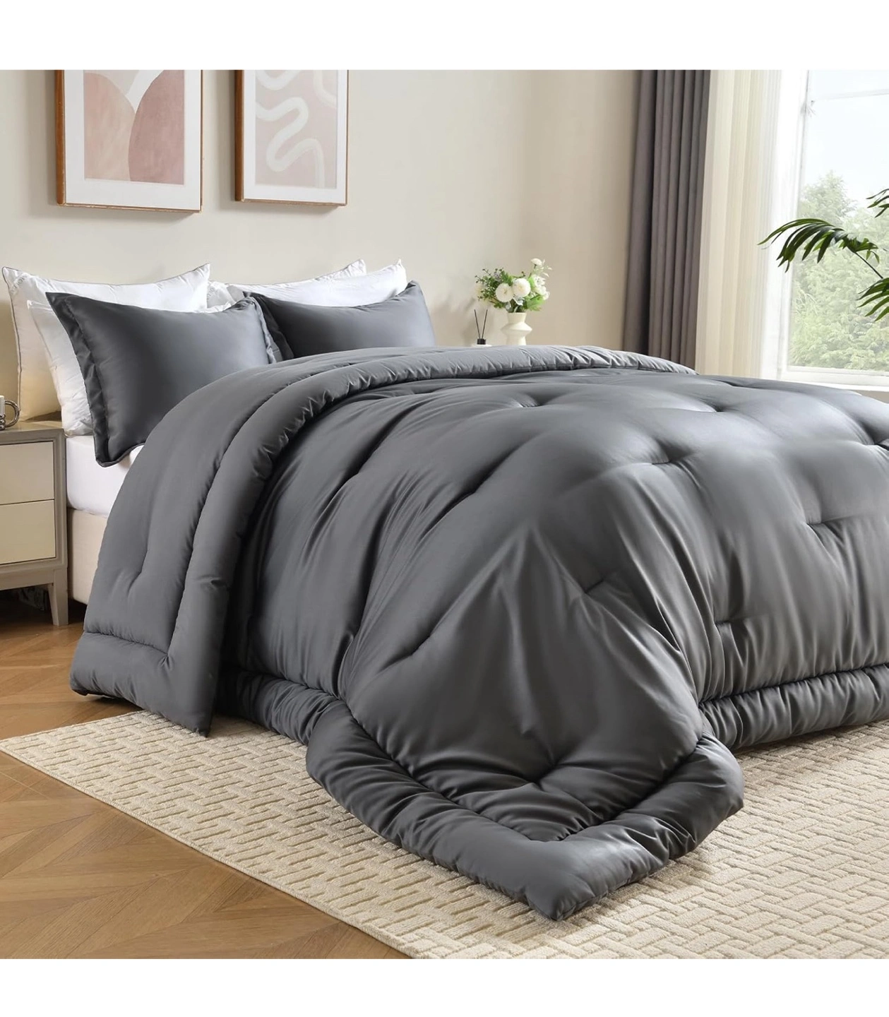 Cosmoluxe Queen Comforter Set, Satin Comforter Sets for All Season, 3 Pieces Reversible Lightweight and Breathable Bedding Sets with 1 Silky Comforter and 2 Pillow Shams (Dark Grey)