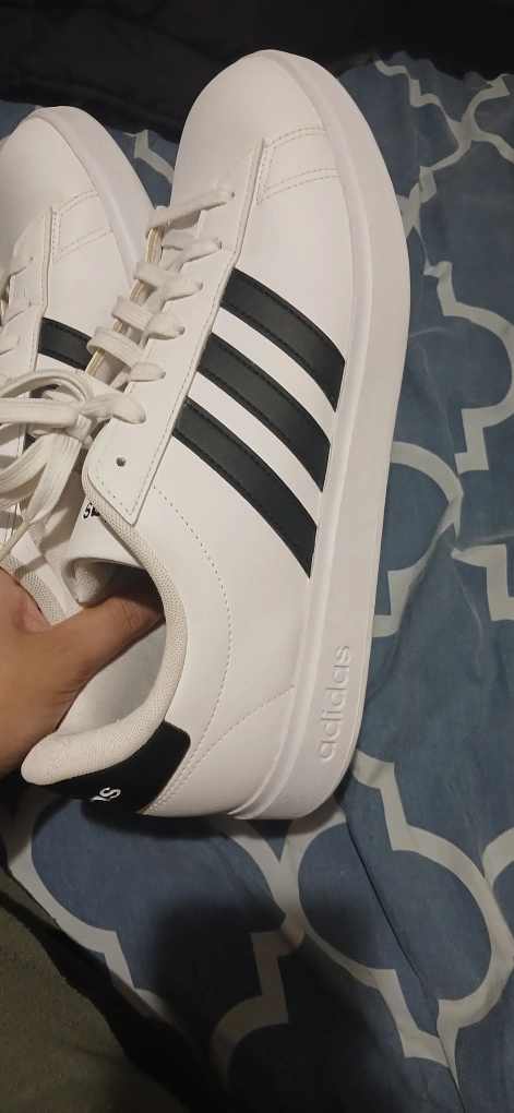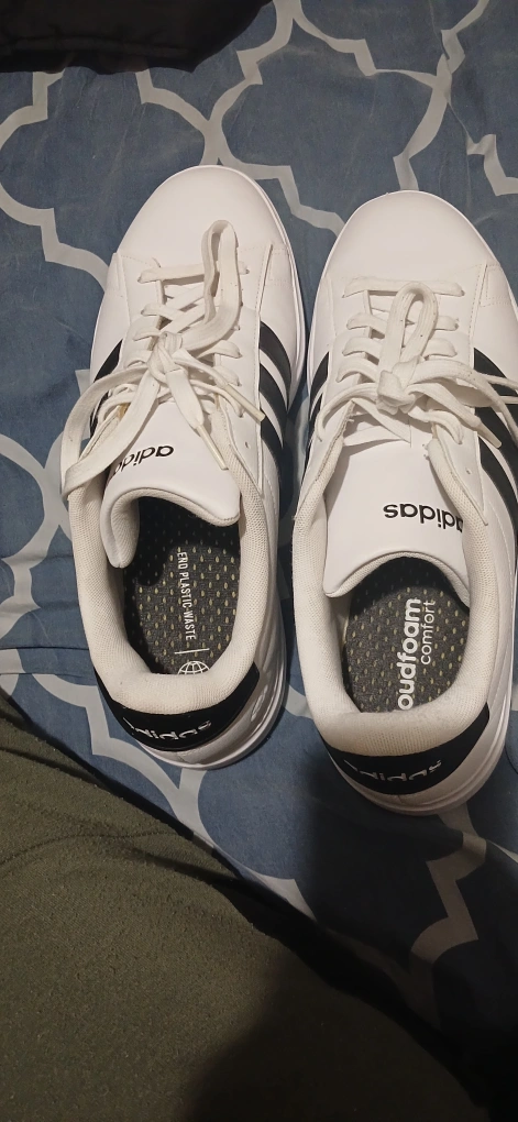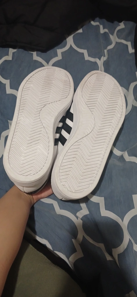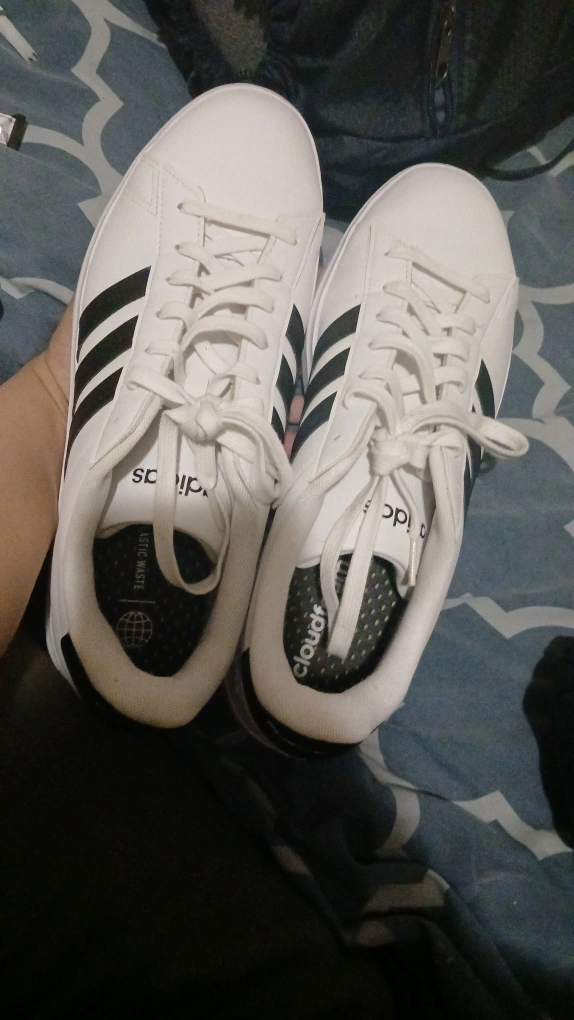 1000+White sneakers. Black detailing. Iconic three stripes on the side. Lace-up closure. Soft insole. You can find yourself walking in comfort and style with these sneakers. It was a gift but they are not my size