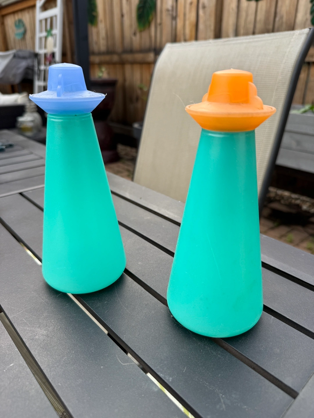 350 ml Tupperware bottles These bottles come in a gorgeous teal color with a blue or orange top. Perfect for holding your vinegar or oils. Can even be used for dressings. Pick up by Irving Park and Cumberland