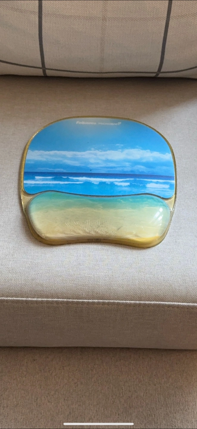 692Mousepad with a gel wrist rest. Features an ocean scene. It is shaped like a rounded rectangle. This mousepad will let you daydream of the beach as you work.