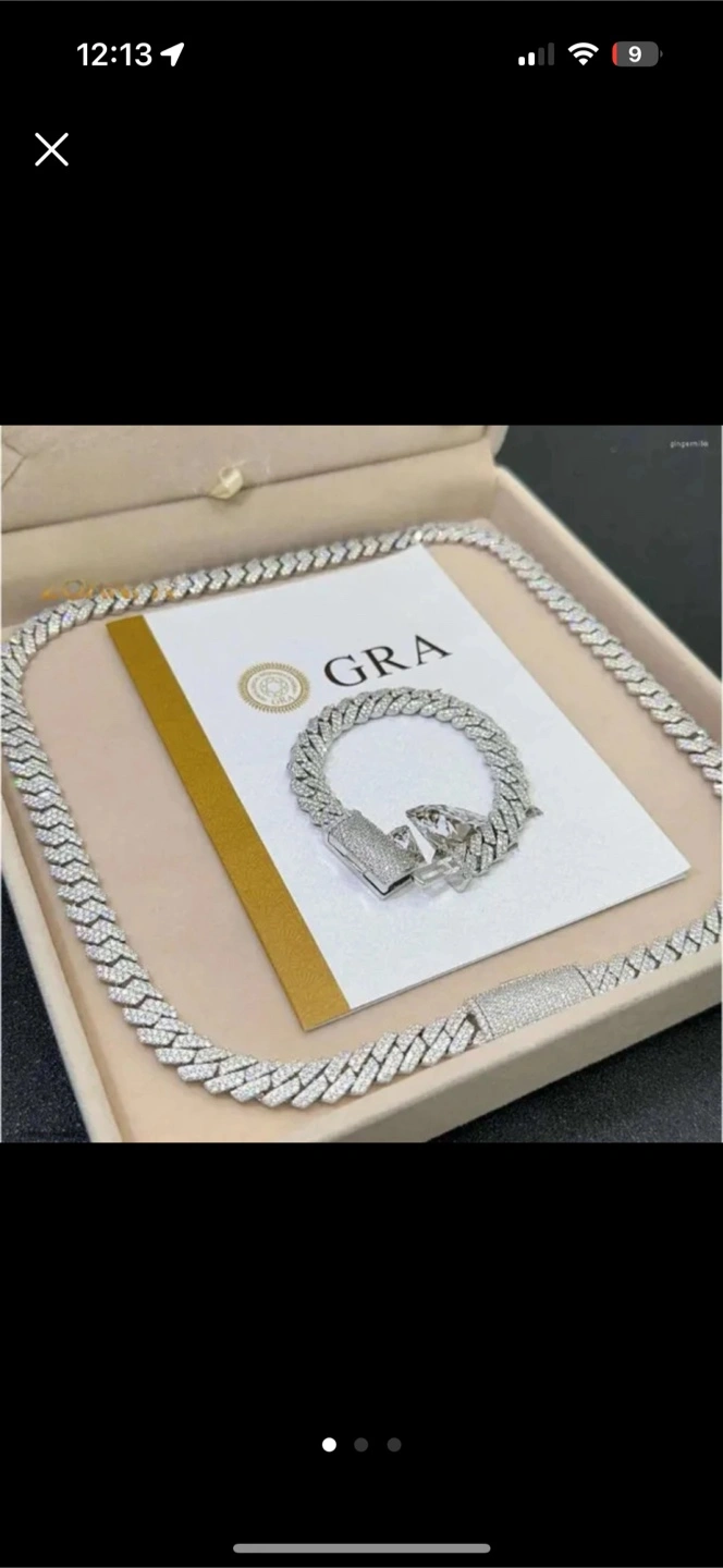 A beautiful Cuban link set. The necklace and bracelet are made of sparkling stones. Comes with the included cards. This would be a perfect item to compliment your look.