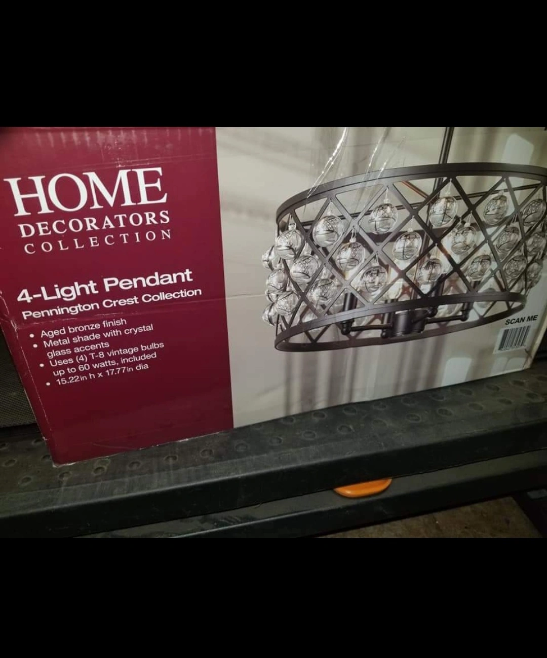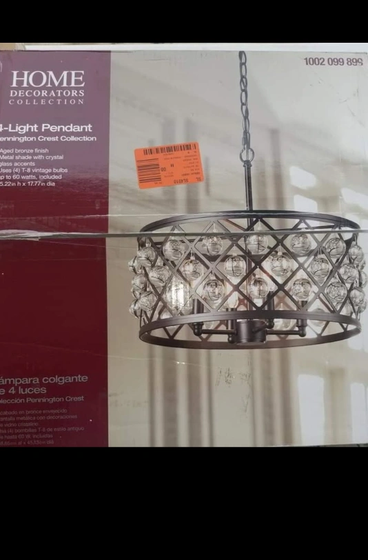 I am selling a 2 pendant light. Features a crystal sphere design. The pendant light features an aged bronze finish.