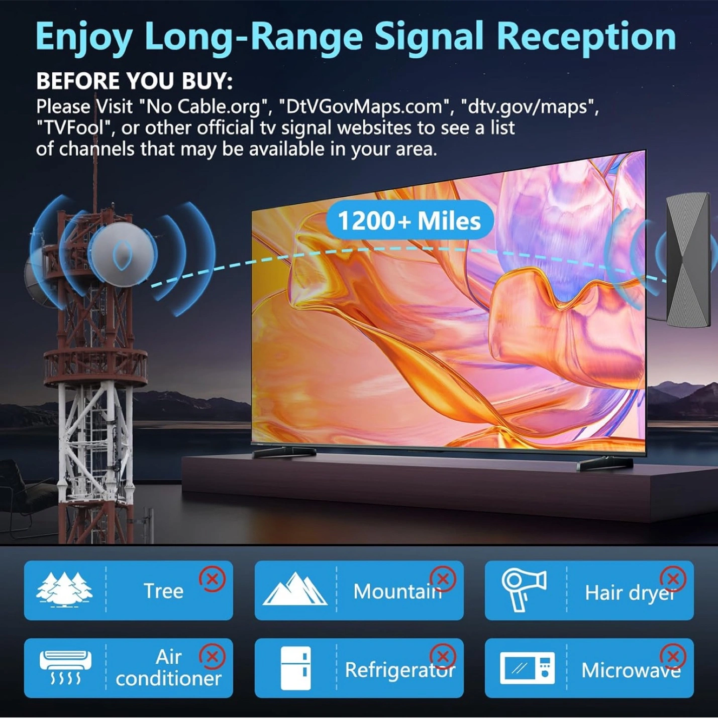 Indoor/Outdoor Amplified Digital TV Antenna