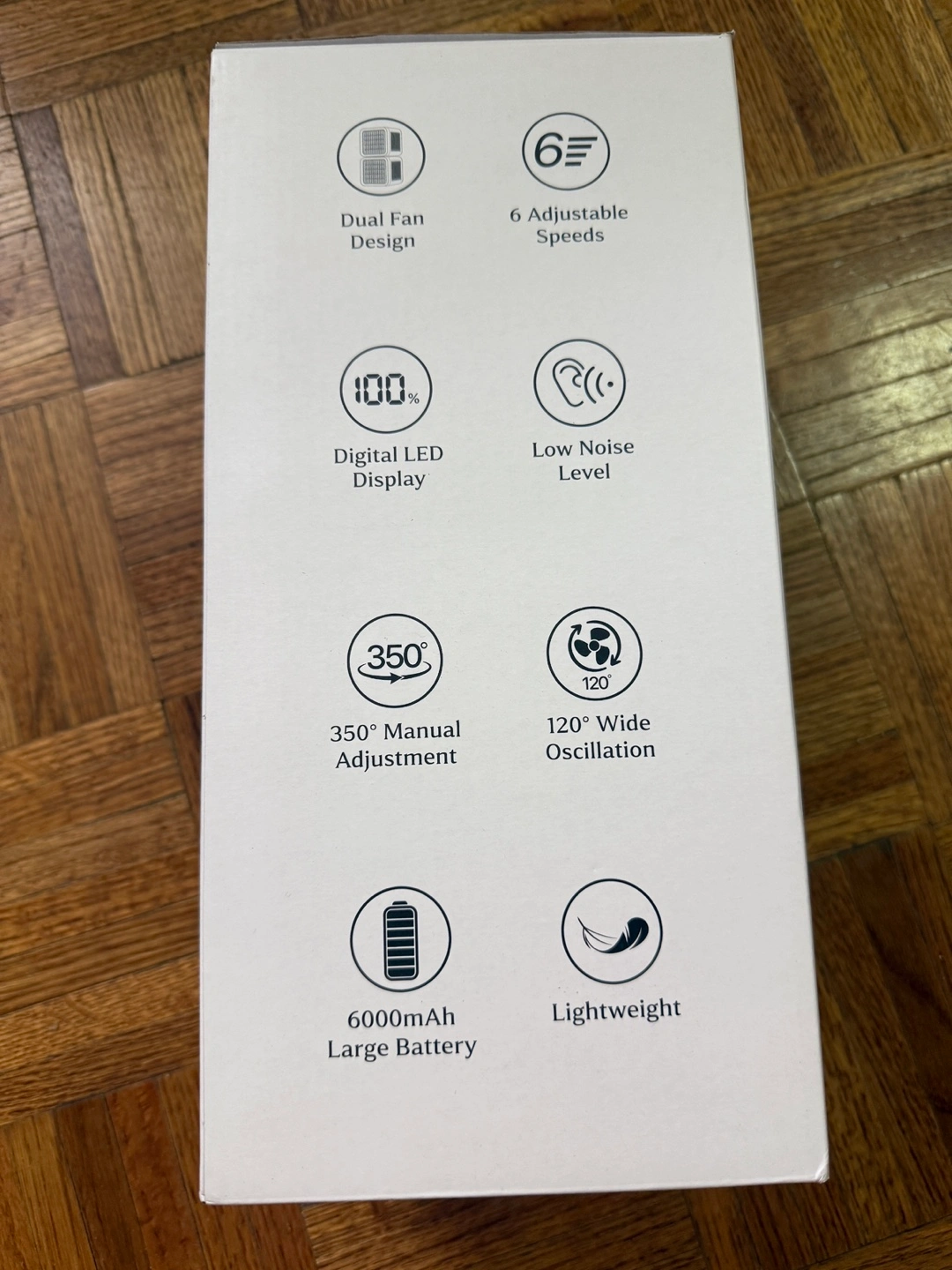 Dual fan design, with six adjustable speeds. It has a digital LED display, and a low noise level. The fan offers a 350-degree manual adjustment and 120-degree wide oscillation. This is an ideal item to enhance your relaxation.
