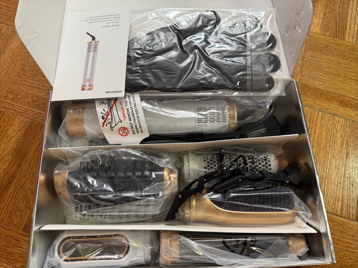 Multiple hair styling accessories. Items are still sealed in their original packaging. The box is in great condition. Take your time and enjoy pampering yourself with this lovely set.(brand new in box)