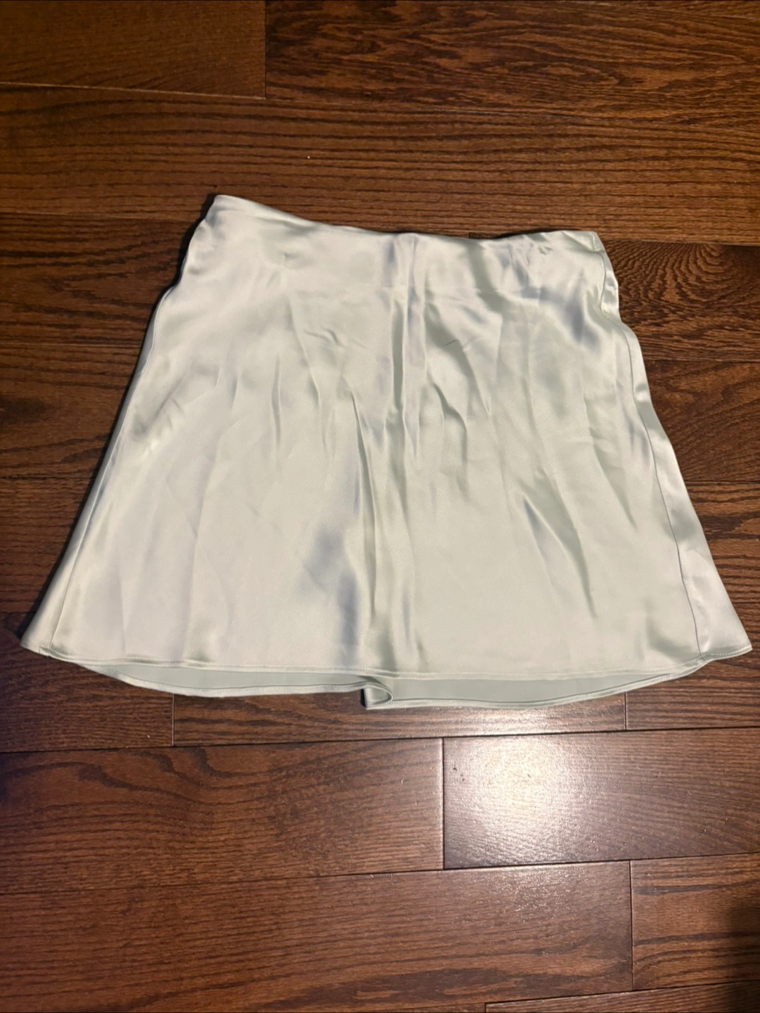 Shira satin mini skirt, “Baby Mint” color, from Dynamite. Size small.