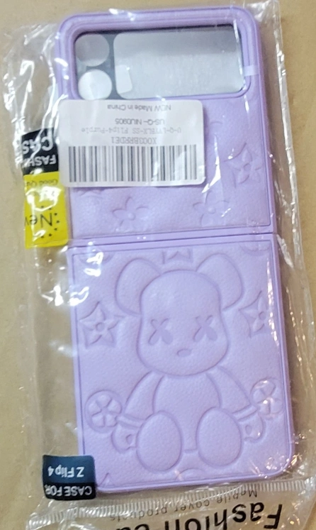 New Z Flip 4 phone case. Lavender in color. Features a bear design with stars and flowers. A great phone case to protect your phone. Pickup in River Grove