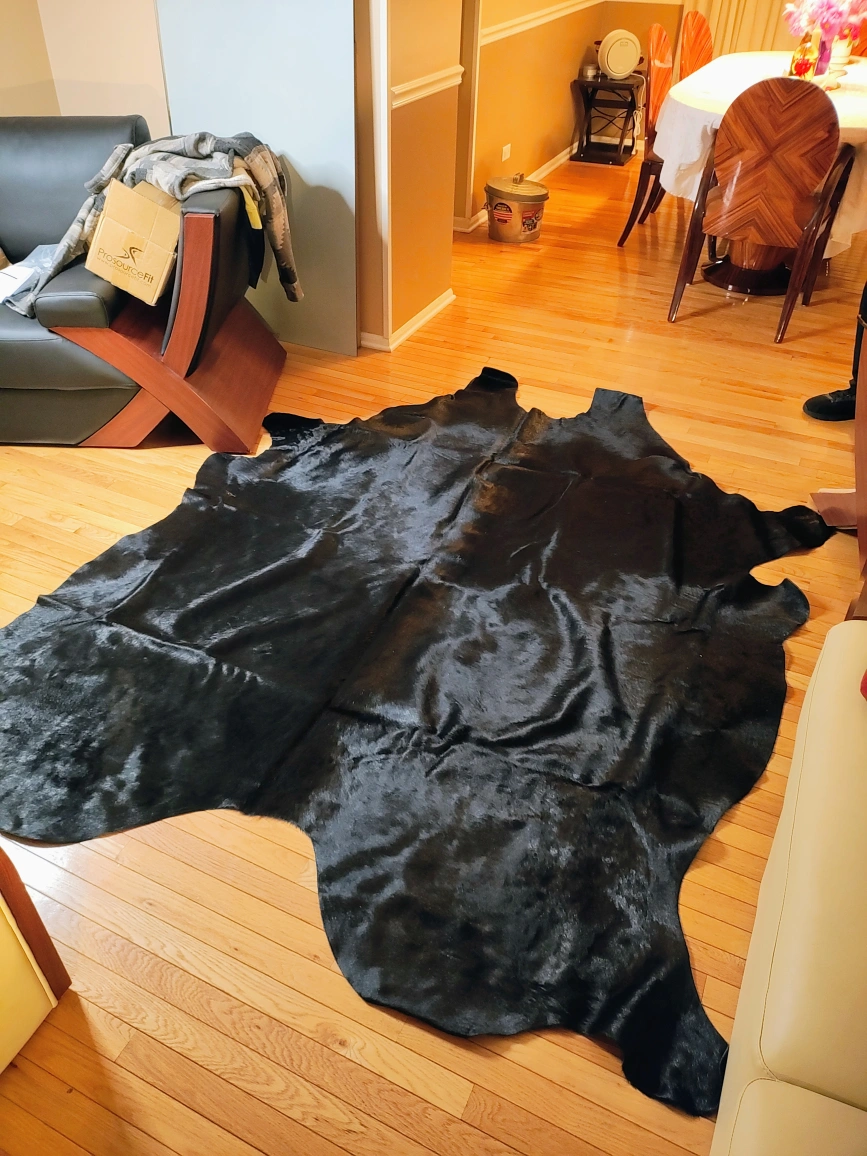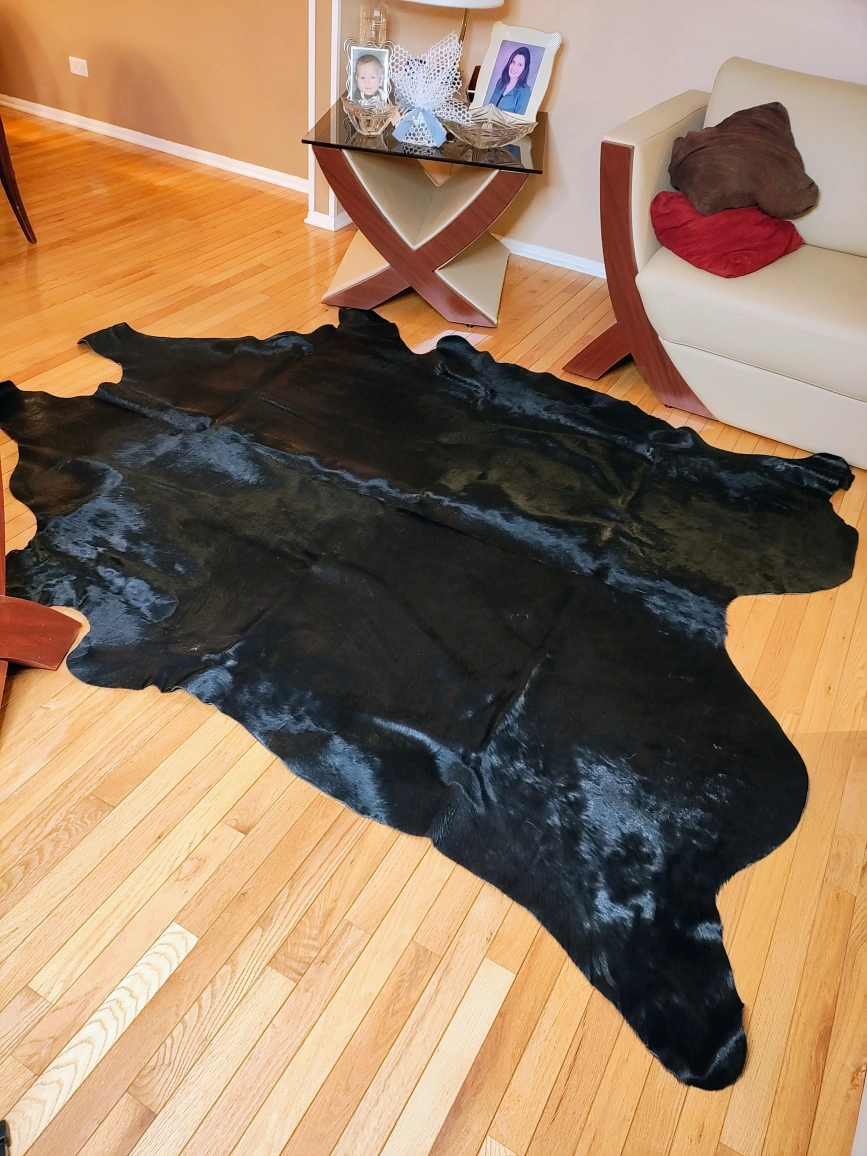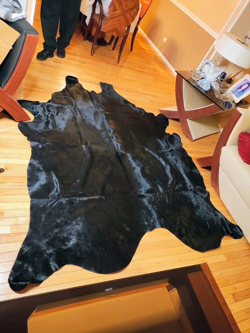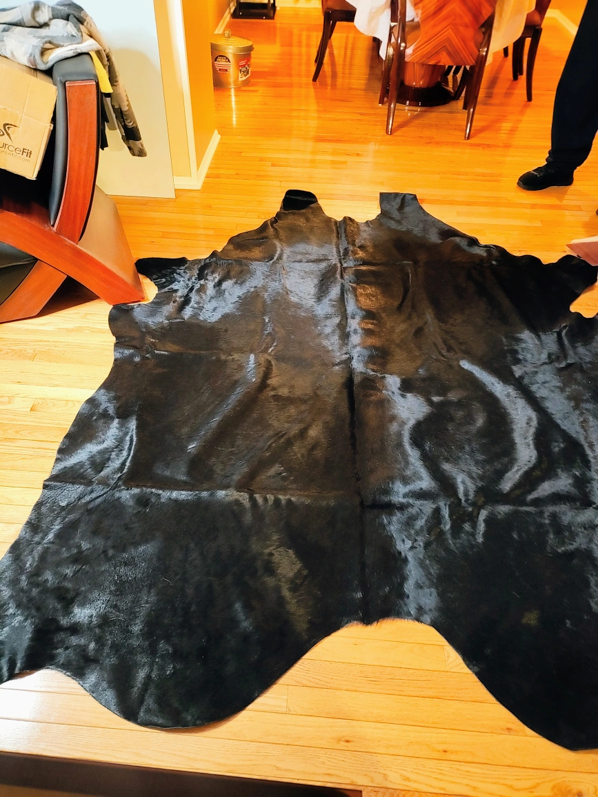 Original Cowhide Rug. Black. Approximately 6X8 Feet pick up only. cash only.