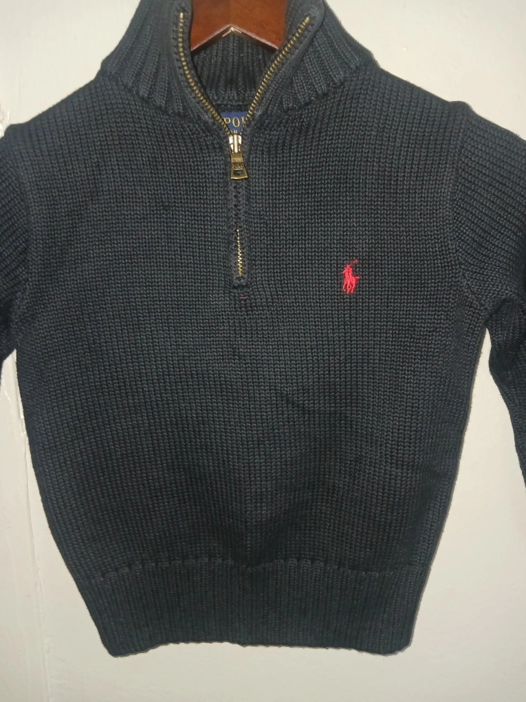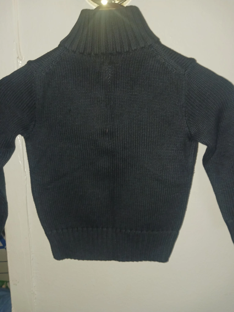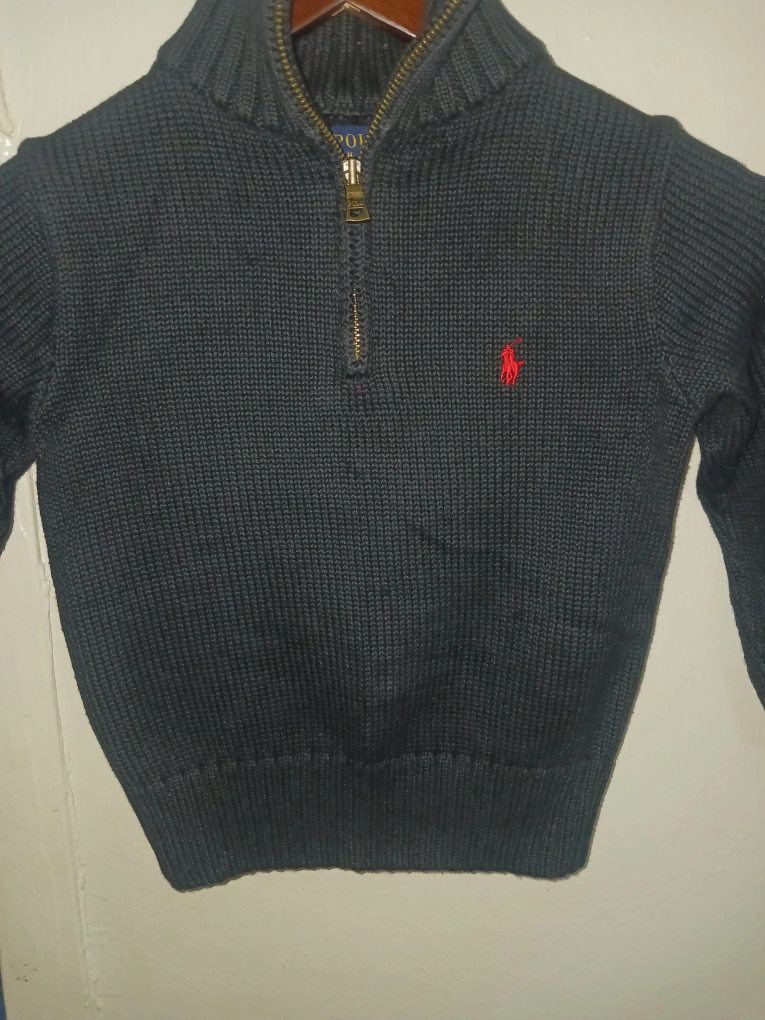 A cozy knit sweater. Features a zipper detail, and ribbed trim. Perfect for cooler days spent outside or inside, reading a book.