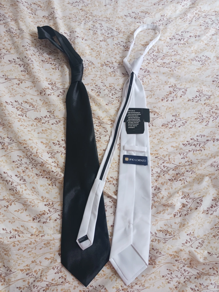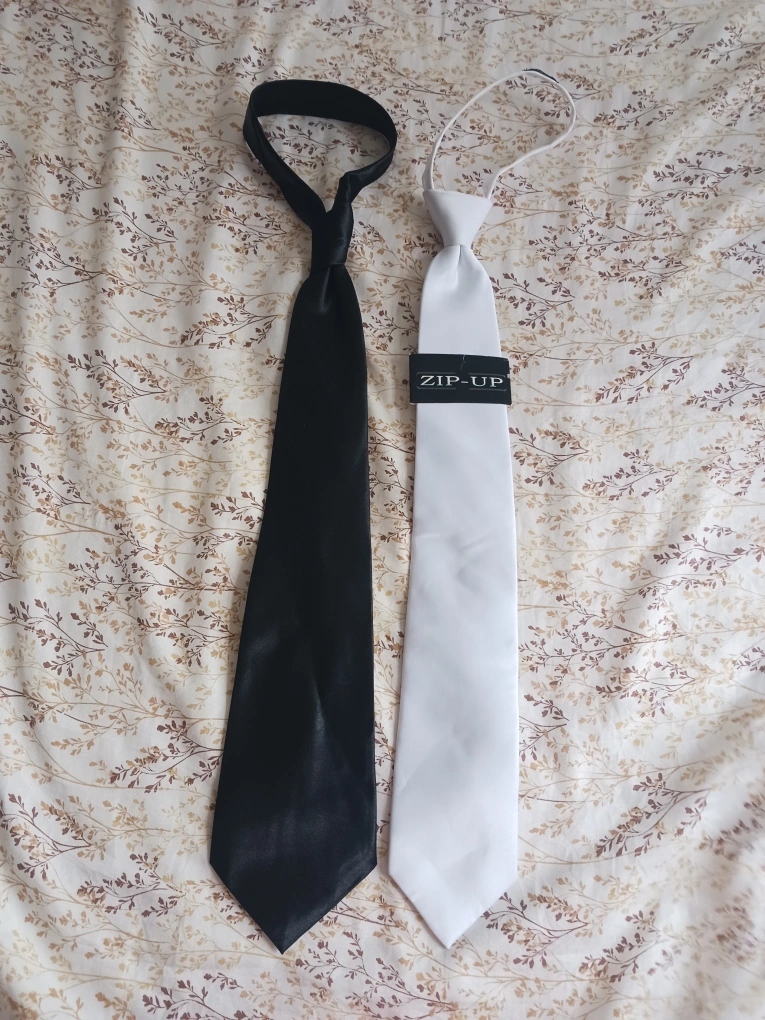 Two neckties, one black and one white. Different styles. Consider using these when dressing up.