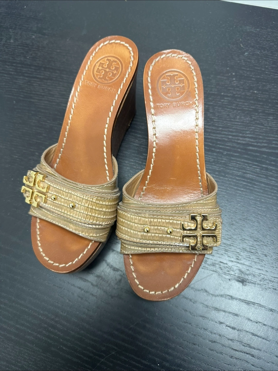 188Sandals with a stacked wedge heel. Featuring a leather insole and a decorative strap across the foot. A lovely pair of shoes, perfect for strolling around on a warm day.