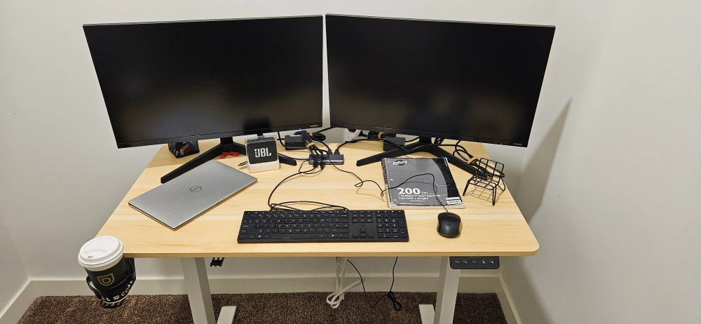 Advertisement for 2 monitors only - the desk (is being sold separately), keyboard, mouse, docking station etc. are only for display.