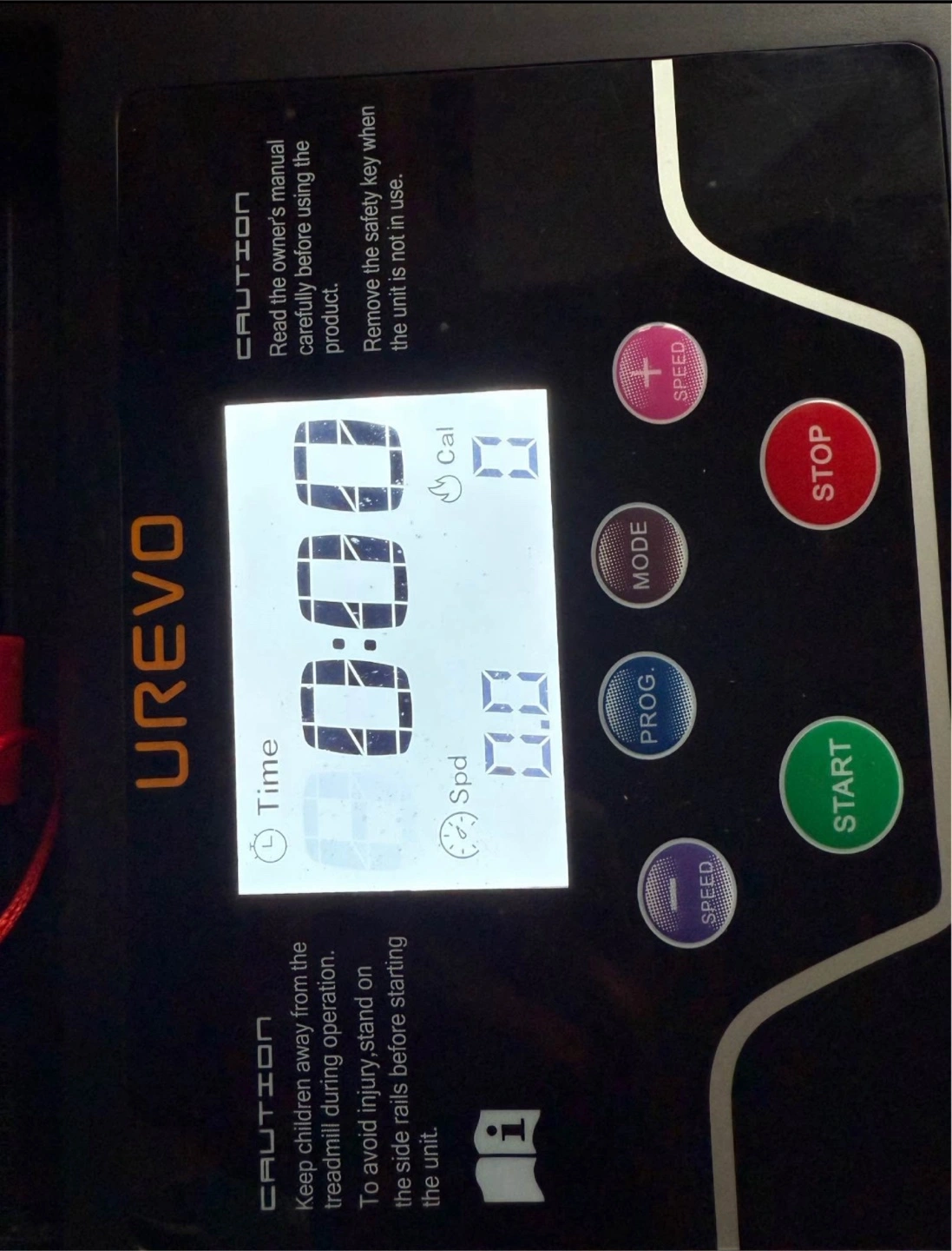 Treadmill features an LED display. Various functions are displayed on the screen. It has speed, mode, and program buttons. Use this treadmill for your daily exercise routine.