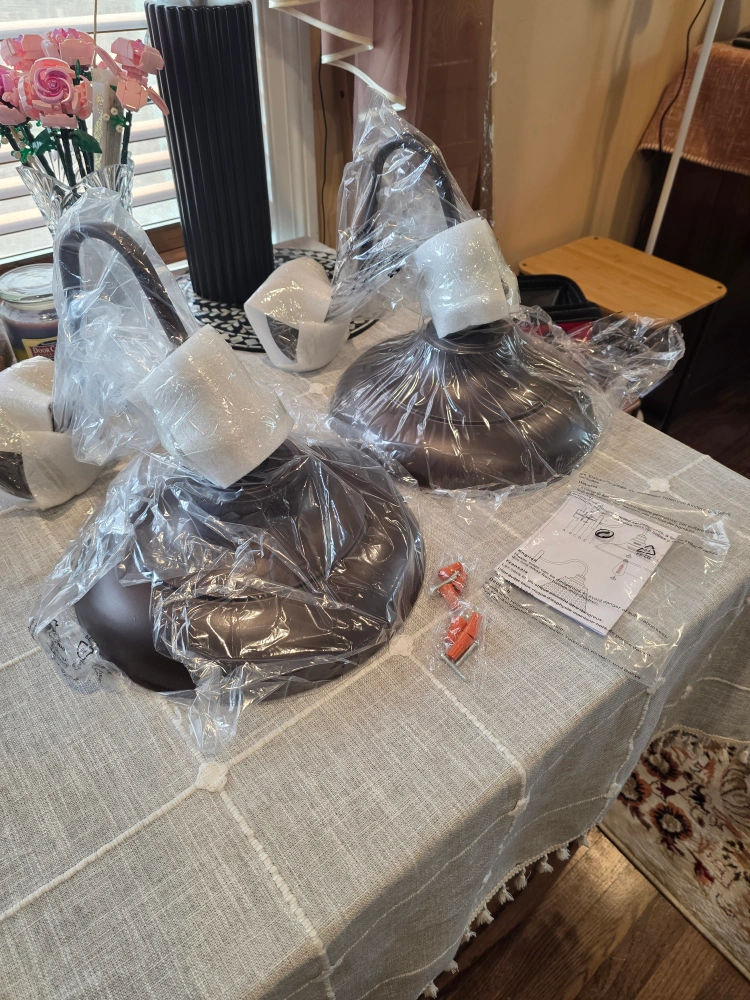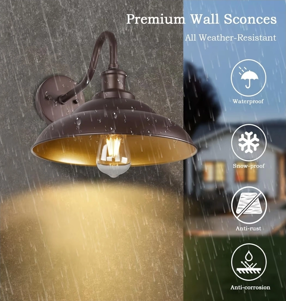 Wall sconces, all weather-resistant. Perfect for adding a soft glow to your home, these wall sconces are just right for an evening on the porch.