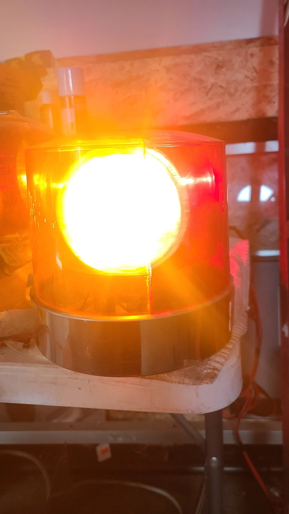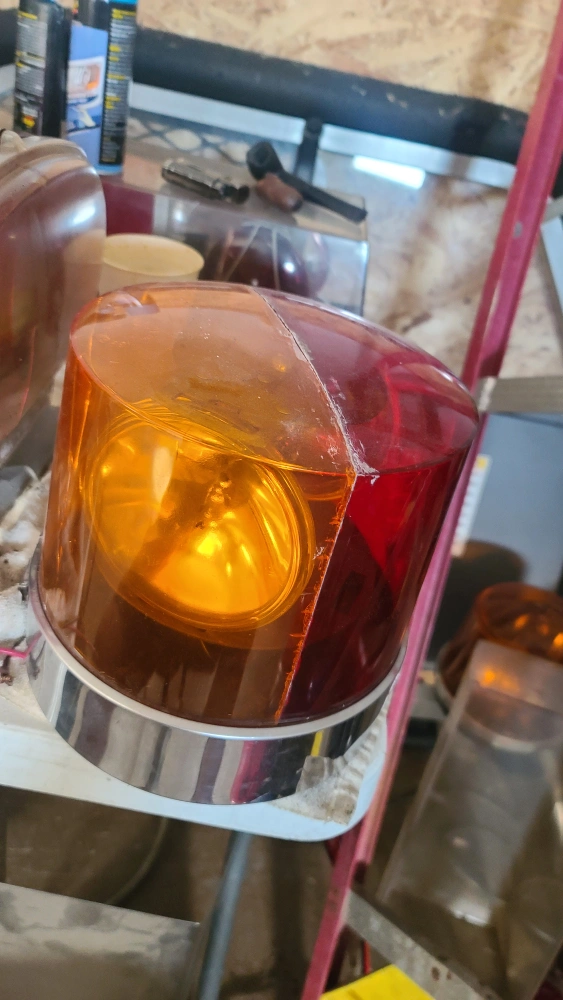 FOR SALE IS OUR GROTE 7622 2 BULB ROTATING BEACON. THE DOME IS A STOCK AMBER/RED SPLIT DOME. OUR LIGHT IS IN 馃挴 % WORKING CONDITION AND IS CLEAN. CALL OR TEXT US @ 708 915-9788. BRST CASH OFFER ACCEPTED.