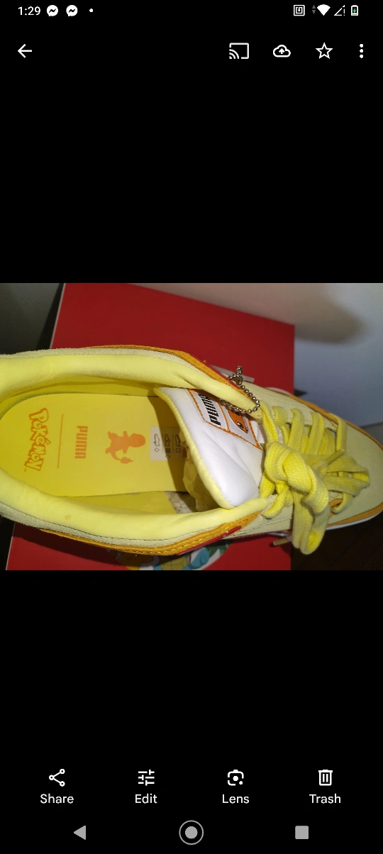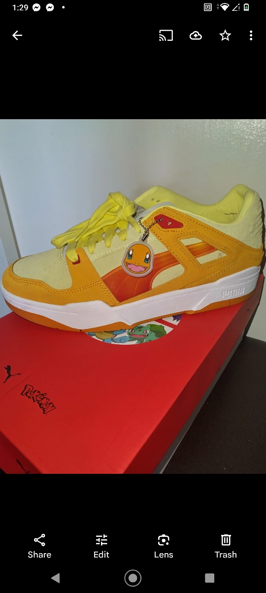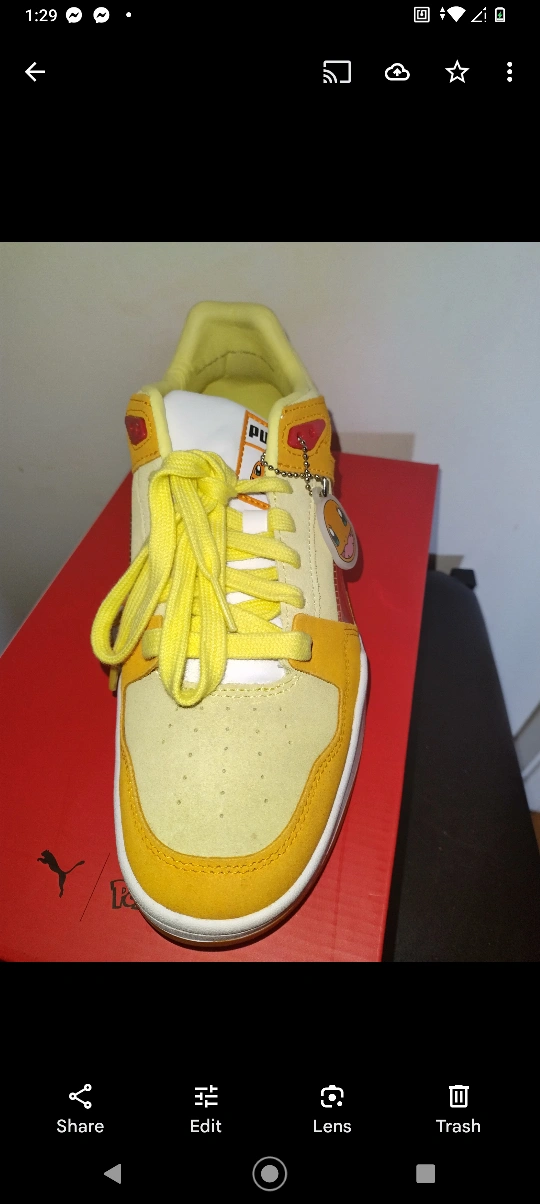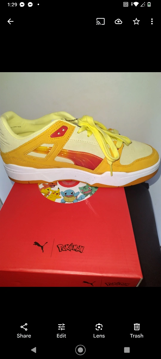Bright yellow sneakers with orange details. Accompanied by a Pokemon themed box. These sneakers would be perfect for a relaxing day of activities. Worn once excellent condition. Size 10.5