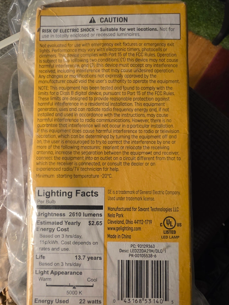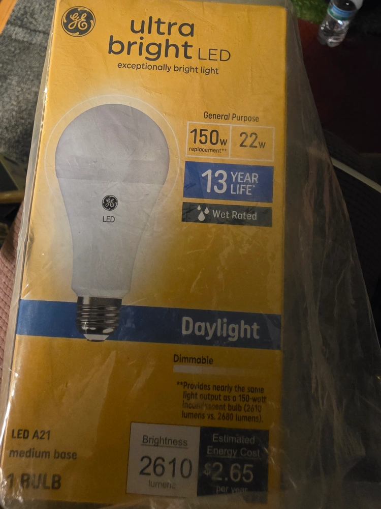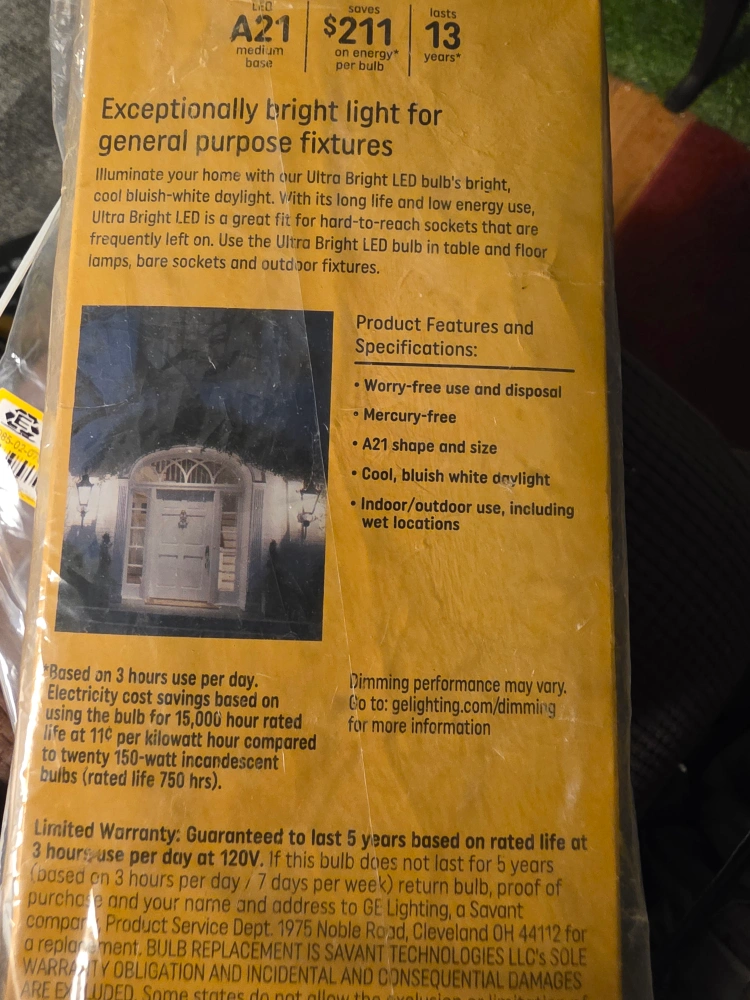 A new, un-used light bulb in its original packaging. Designed for general purpose lighting. Perfect for use in your home for a brighter, more inviting atmosphere.