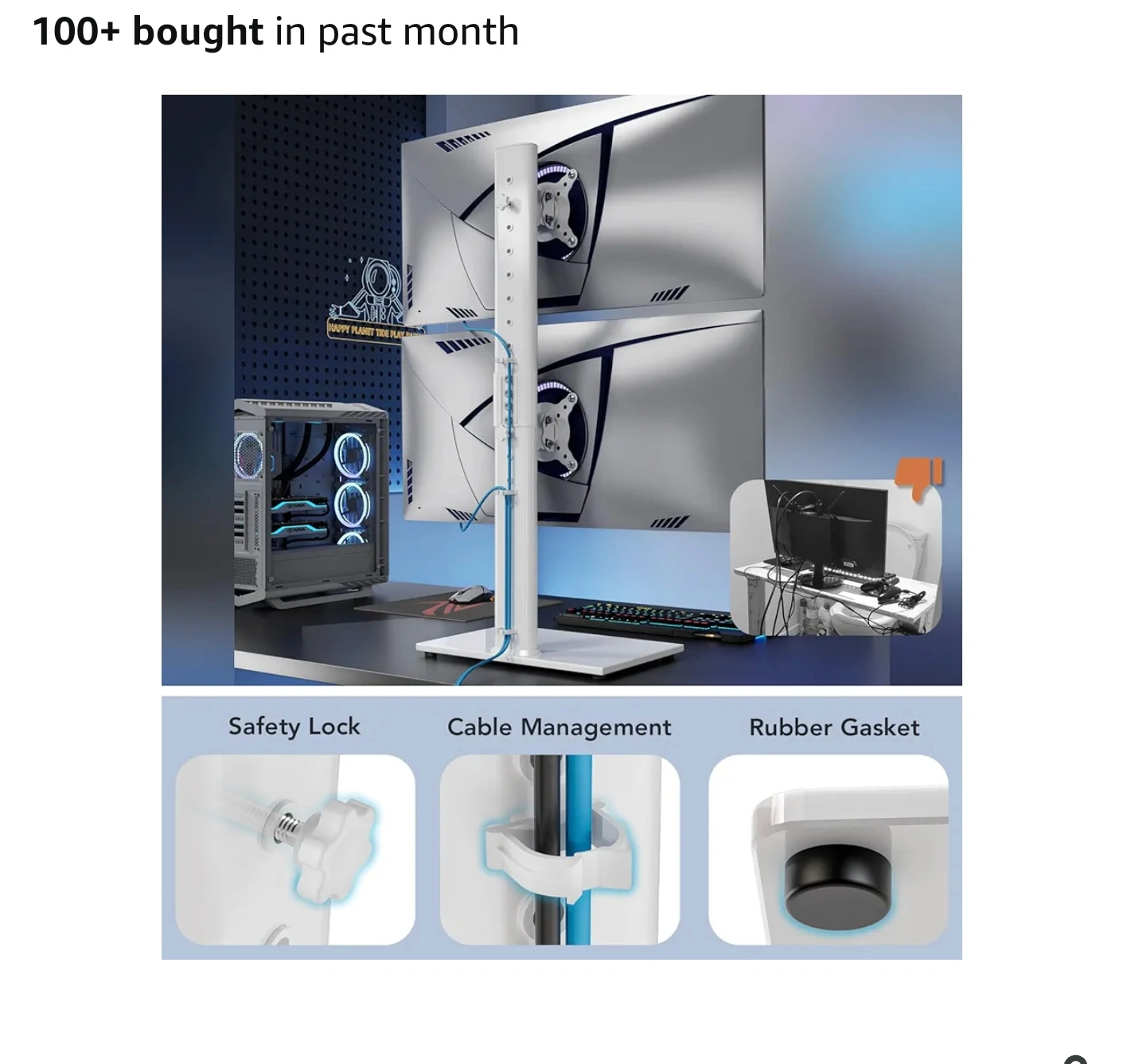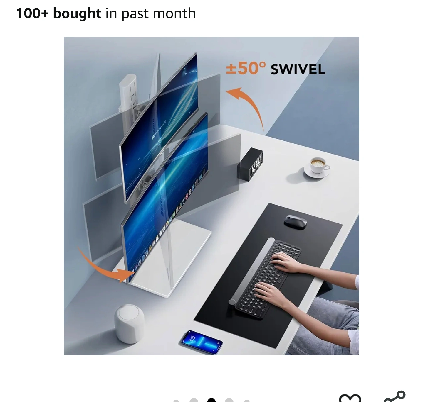 Monitor mount for dual monitors. Designed to keep your desk tidy. It’s easy to set up and use. Using a monitor mount can reduce neck strain and improve posture, creating a more relaxing workspace for you.