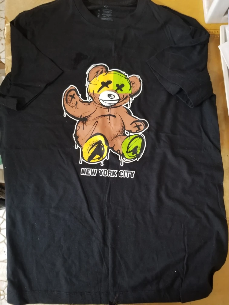 Black t-shirt. Graphic design features a teddy bear. Says "New York City". Makes a great addition to your wardrobe, you'll feel at peace wearing it. Cash only, meet in public place. only serious inquiries and buyers only.