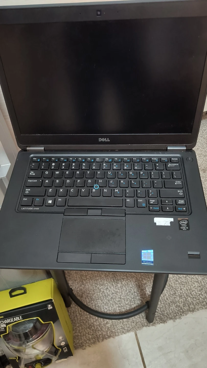 Dell Latitude E7450 laptop. Features an Intel Core i5 processor and Windows operating system. Includes a keyboard and trackpad.