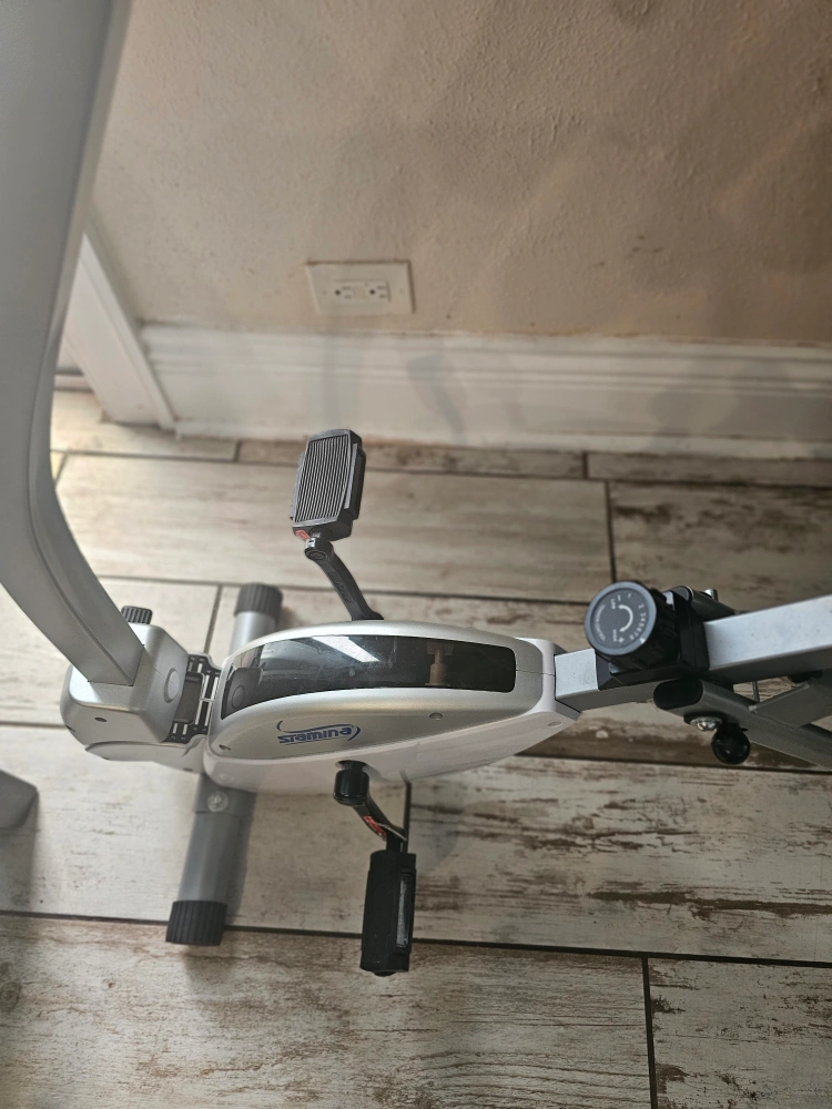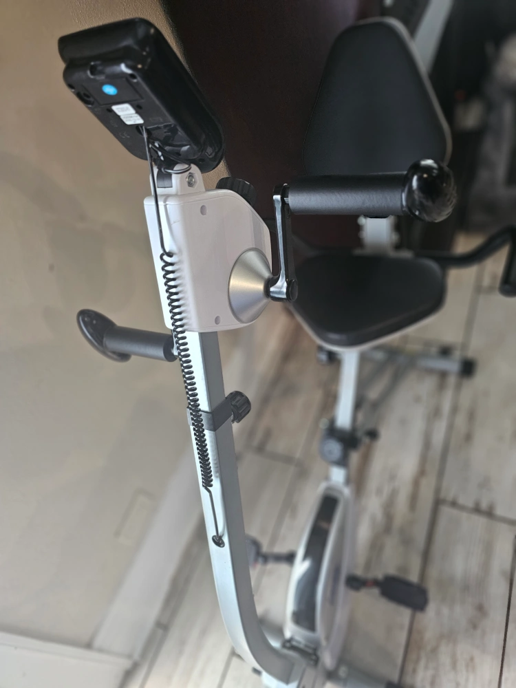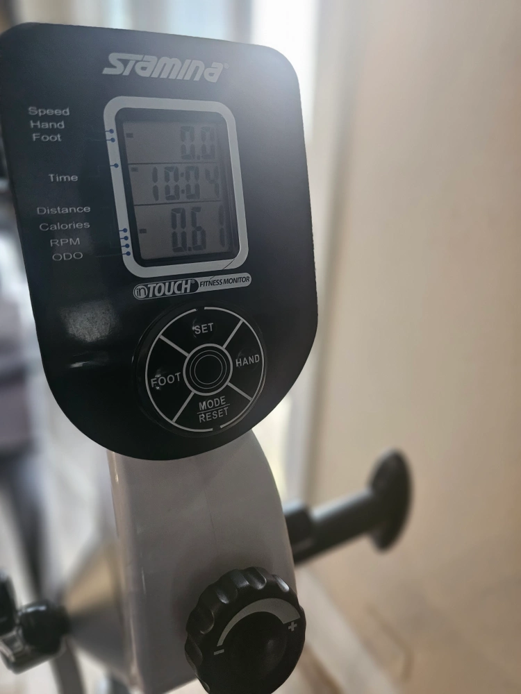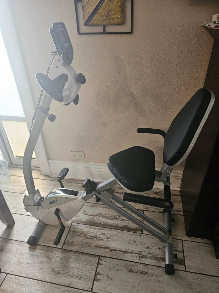 Stamina exercise bike, a great way to improve your cardiovascular health. It features an adjustable seat and handlebars, along with a digital display that tracks your workout metrics.