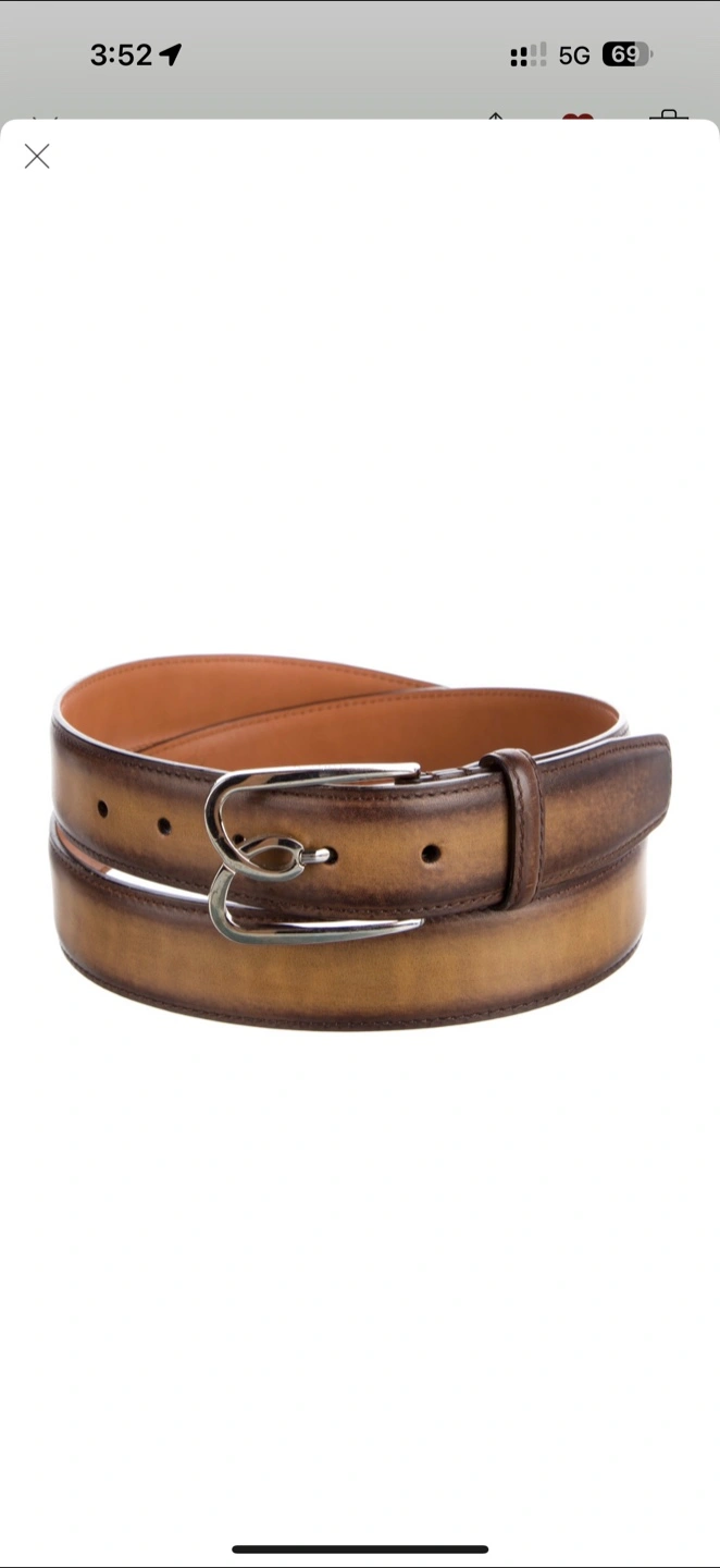 ORIGINAL - AUTHENTIC β’ Berluti Waist Belt β’ Brown Leather β’ Silver-Tone Hardware β’ Buckle Closure Length Min: 40" Length Max: 43" Width: 1.25" Gender: Men Color: Brown Clothing Size: XXL
