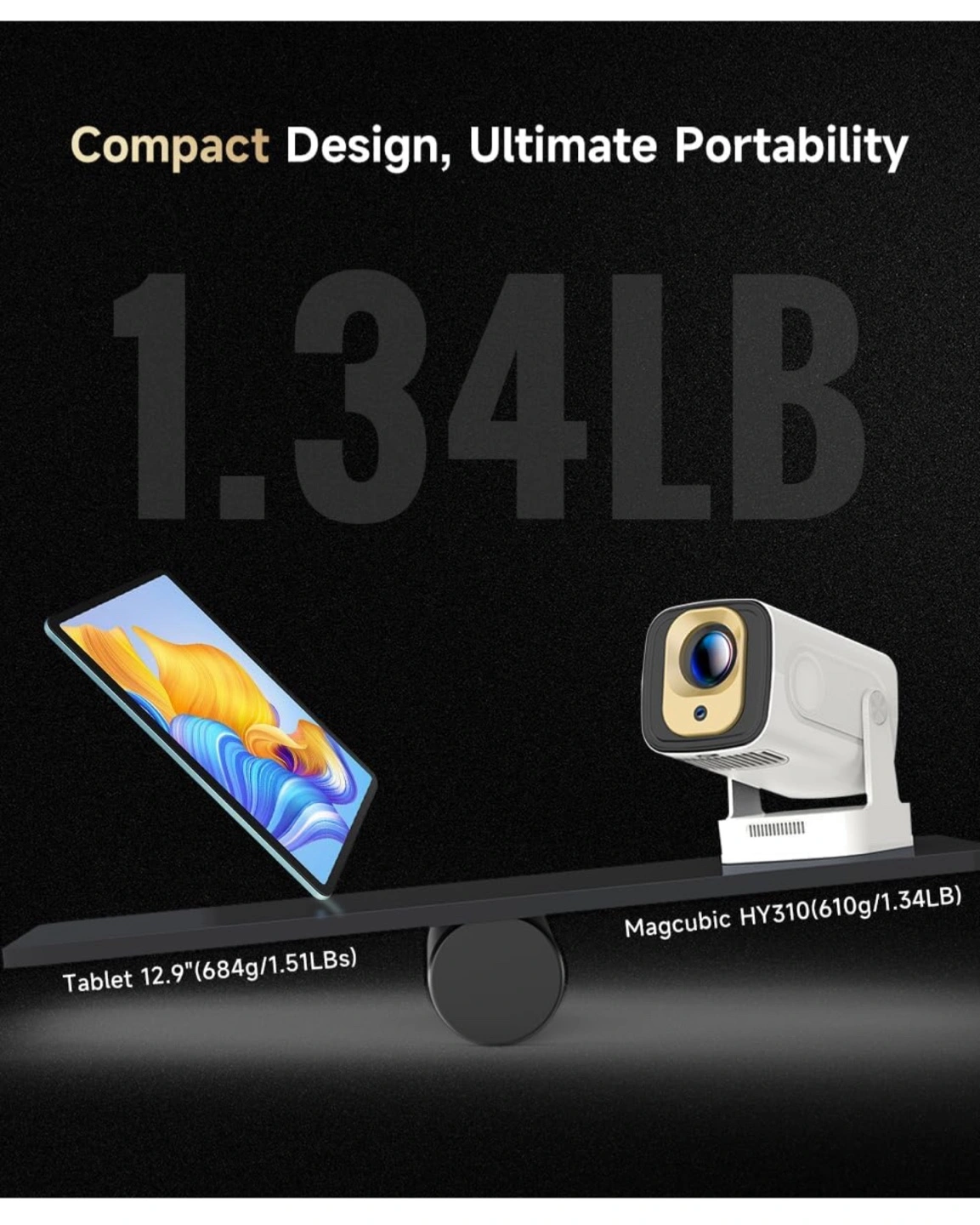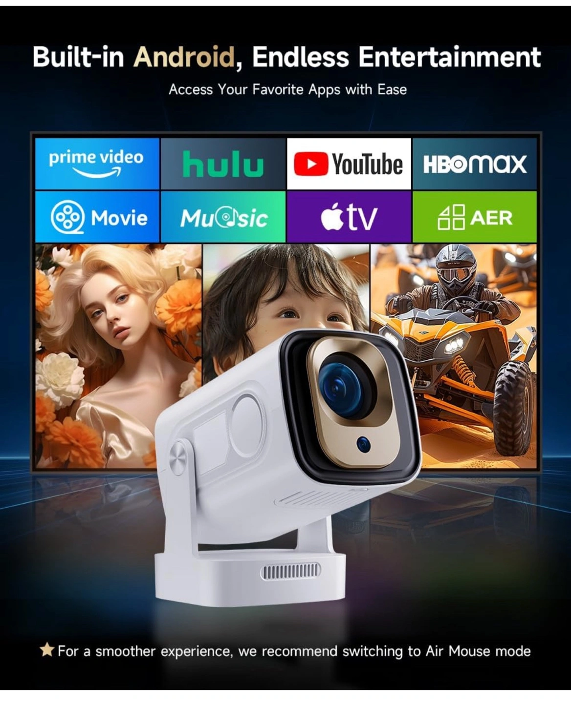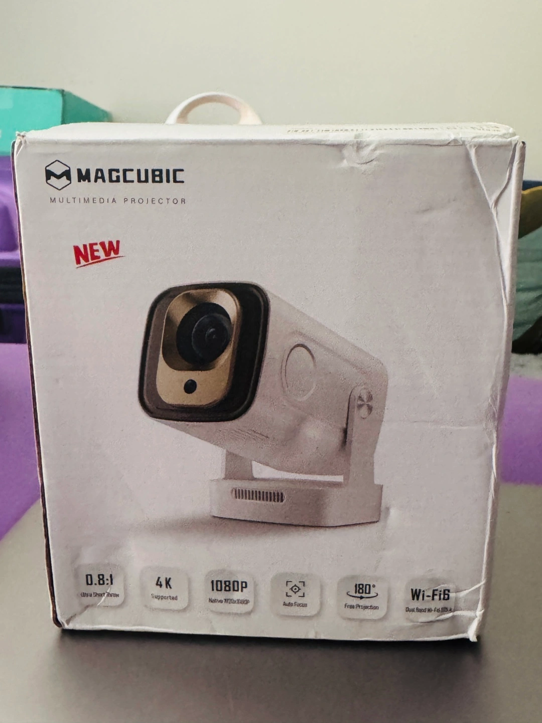 A Magcubic multimedia projector, new in the box. It features 4K support, 1080P native resolution, auto focus, and 180-degree free projection. You could use this projector to enjoy a movie night under the stars.