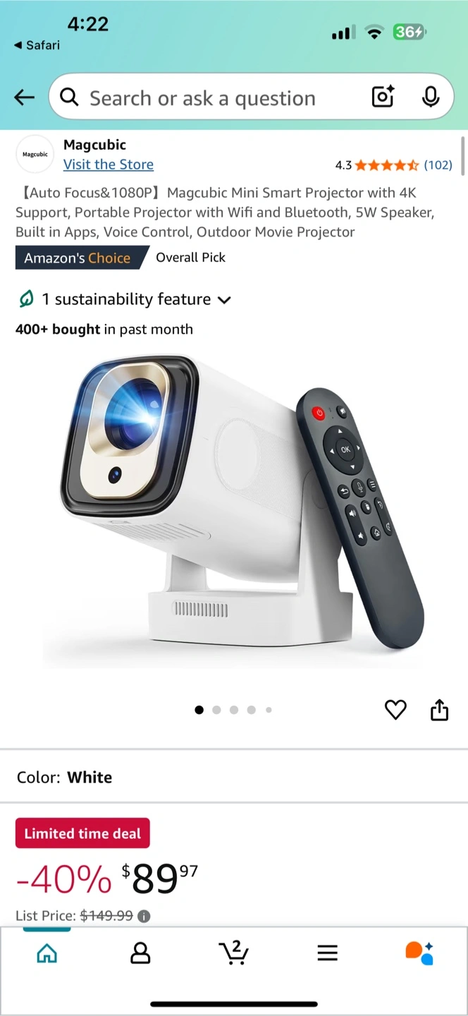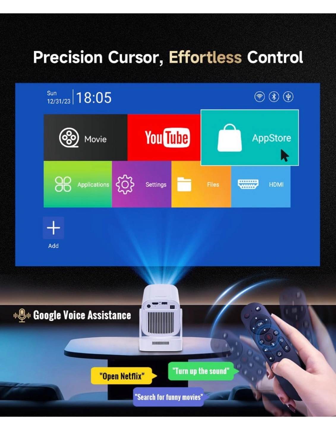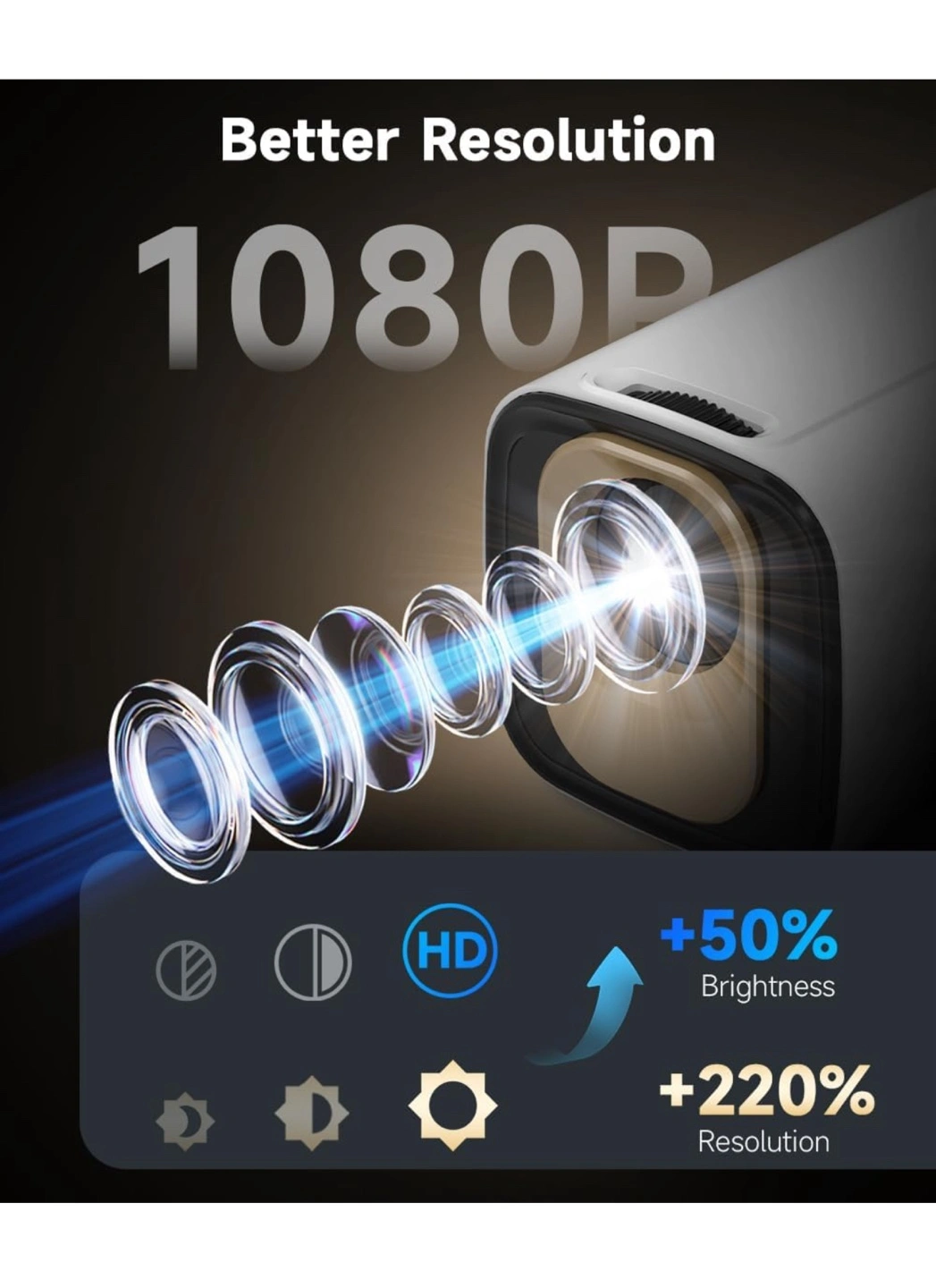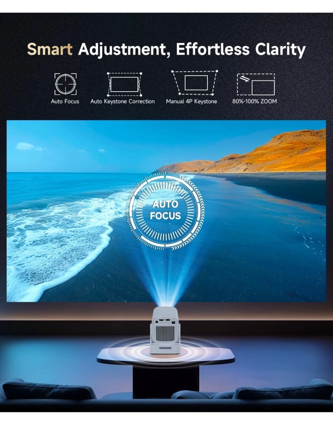 A Magcubic multimedia projector, new in the box. It features 4K support, 1080P native resolution, auto focus, and 180-degree free projection. You could use this projector to enjoy a movie night under the stars.
